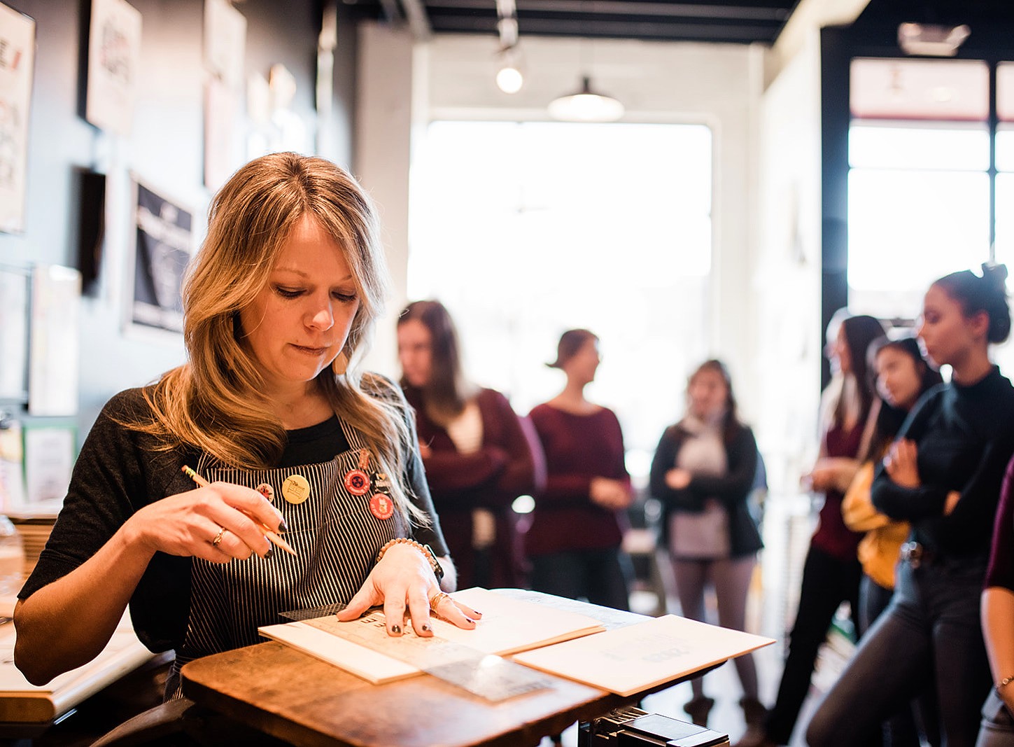 I run my own graphic design and letterpress studio. I print on vintage presses. My background in corporate design as well as over 25 years of working and teaching graphic design, I know a thing or two about translating digital designs into awesome letterpress work. And, after having worked with some larger brands like PaperChase (UK), PaperSource, USC Office of Development and Madsen Cycles, I’ve leaned into and developed more unique merch design. I really have fun thinking about ways to extend someone’s brand in print, design and apparel besides social media.