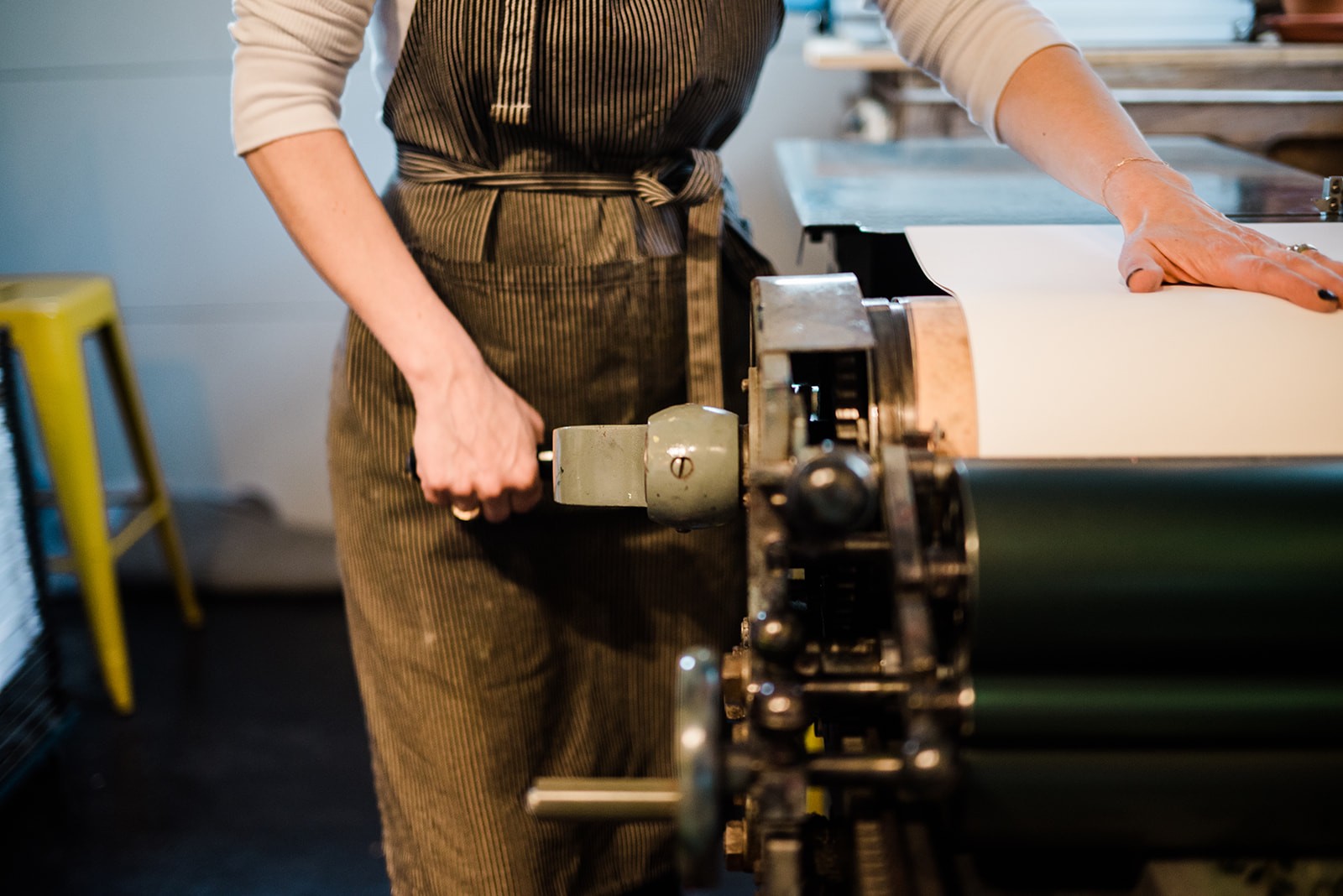 I have been working at earning a full-time living from my small business. To start at the beginning, I studied graphic design in undergraduate school and graduate school both at The University of Iowa. Between undergraduate and graduate school I worked full-time as a graphic designer in a corporate design group at a hardware/software company in Austin, Texas. Working as a designer full-time prompted me to explore graduate school (since I found I enjoyed talking about design and design decisions with my fellow designers), which led me to pursue graduate school. One of the first courses I took was Introduction to Letterpress Printing. Besides expanding my design knowledge, I was really interested in merging design, with physicality of letterpress and the serendipitous moments that come on press. It was a slow procession from learning letterpress to setting up a design and letterpress studio. In 2006, after graduate school I took an academic position as an assistant professor of graphic design at Drake University. I also bought my first press, filed small business paperwork and began printing mainly for friends and family to I continue developing my printing skills. I basically worked out of my home studio from 2006 to 2015 (9 years!) doing events and pops-ups. Then in 2015 I moved into a downtown studio space in Des Moines, Iowa. I built my clients and studio from 2015-2021 with quite a bit of success and great projects.