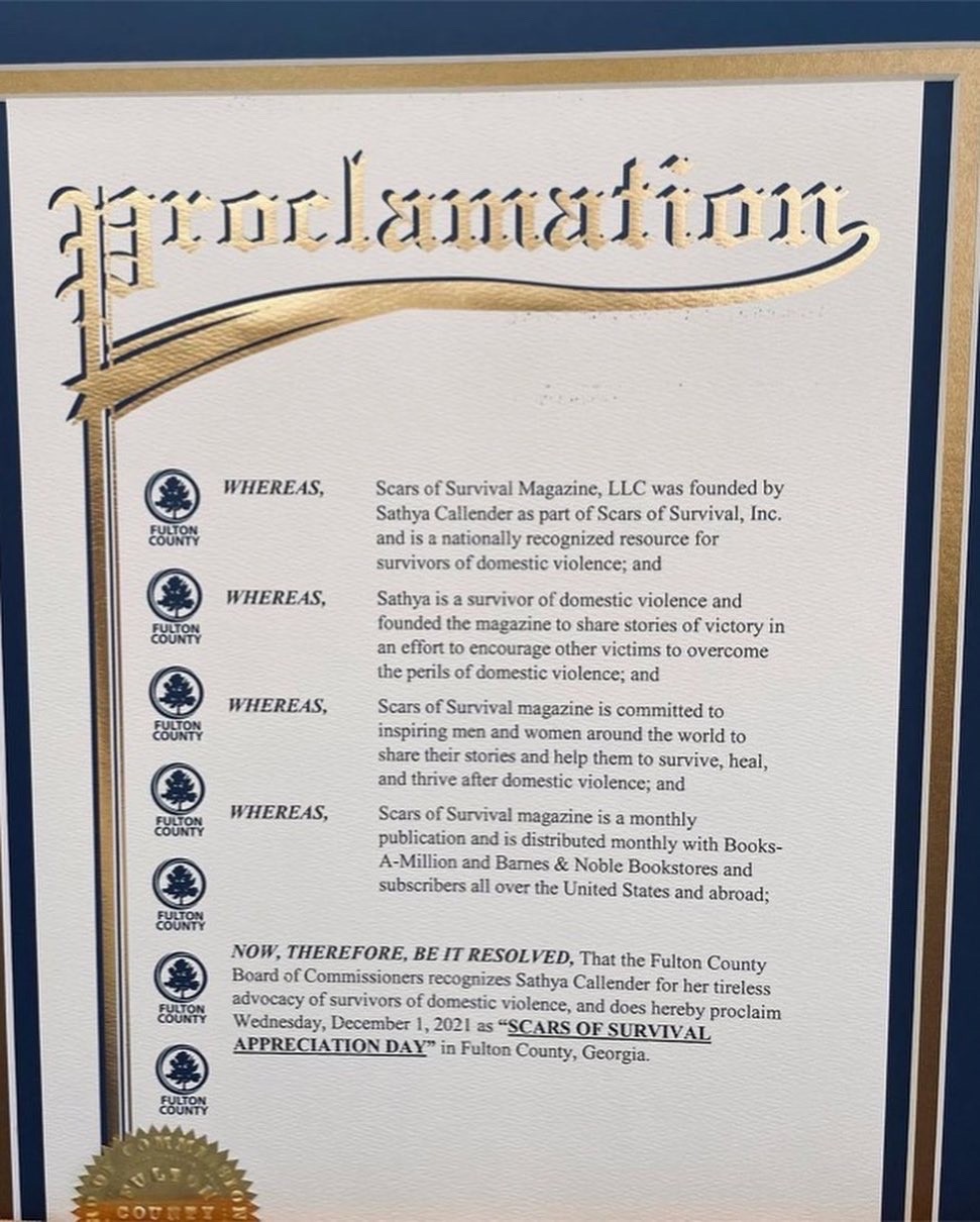 Absolutely! My name is Mrs. Sathya Callender- Wilson (I’m a newlywed)!! I’m the founder/CEO of Scars of Survival Magazine, Scars of Survival Inc, Scars of Survival Survivors Bootcamp, and Scars of Survival Survivors Guide. The entire movement was founded after I overcame a 9 year domestic violence relationship that seemed like forever. I wanted to help other survivors to do the same which is survive, heal, and thrive. Scars of Survival Magazine is a globally impacting publication that has cultivated a safe place for survivors to share their unique stories. I’m most proud of making history and continuously impacting lives and giving hope.