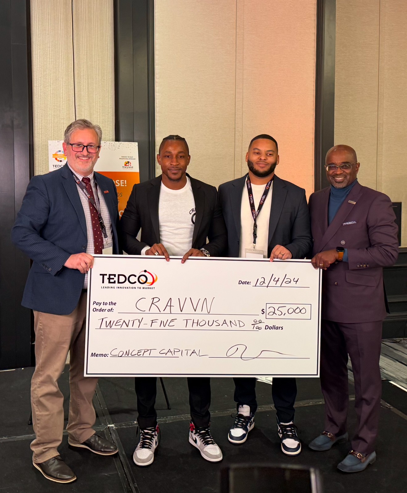 Securing $25k to Fuel Growth Our pitch showcased Cravvn’s innovative solution to mealtime indecision, highlighting our scalable business model and potential for societal impact. The TEDCO Concept Capital Pitch competition’s rigorous evaluation process validated our vision, and we were awarded $25,000 to accelerate our growth. This strategic funding has enabled us to enhance our platform, expand our team, and further develop our AI technology. With this injection of capital, we’re poised to revolutionize the way people interact with food, making sustainable, healthy choices more accessible to all.