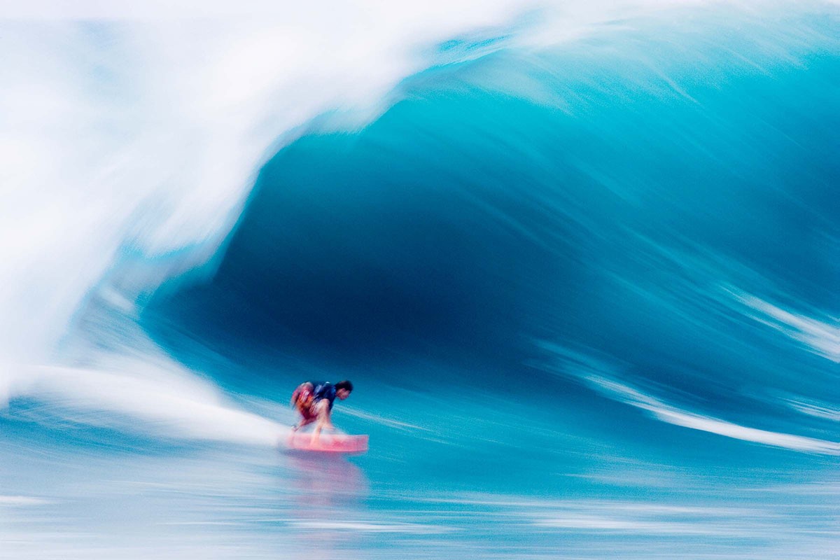Regarding the surf imagery which in the earlier days, made up most of my income; What made my work stand out from the sea of other surf photographers was simply my willingness to mix up my shooting techniques on a pretty regular basis. For example, if was standing on the beach at Pipeline with a big lens and there are 20-40 other photogs standing nearby, I’m almost certainly going to opt for a very slow shutter speed, simply because my imagery will be different to every other photographer there. The one thing to take away from this, when there is an oversupply in shooting talent, it’s time stand apart from the pack. Sure, you’ll lose a few frames by not sticking with 1000th of a second, but your imagery will be different to everyone else there.