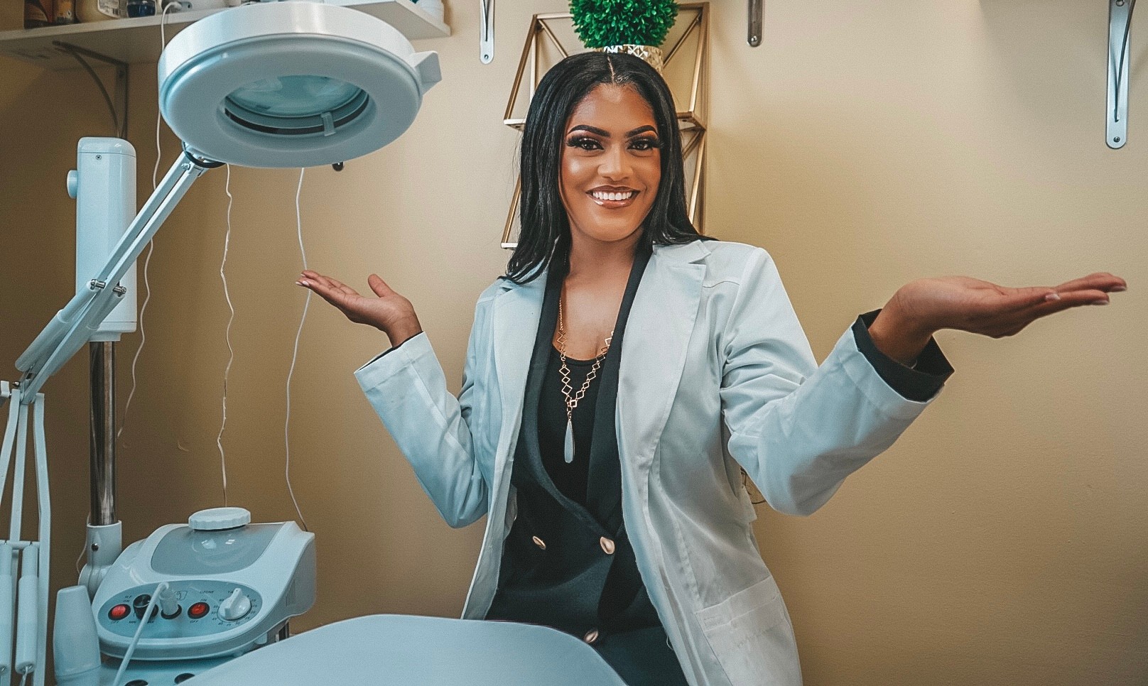 I’m Shantika Licensed Esthetician and solo suite owner of Glo Skin Workz & Wellness since 2020 . Having suffered the effects of challenging skin care, and overcoming it myself , my business is driven from a space of passion, and self-belief. I am an ideal profile for the face of my business, having experienced the challenges of the problem I solve for others and is also the in-house expert.