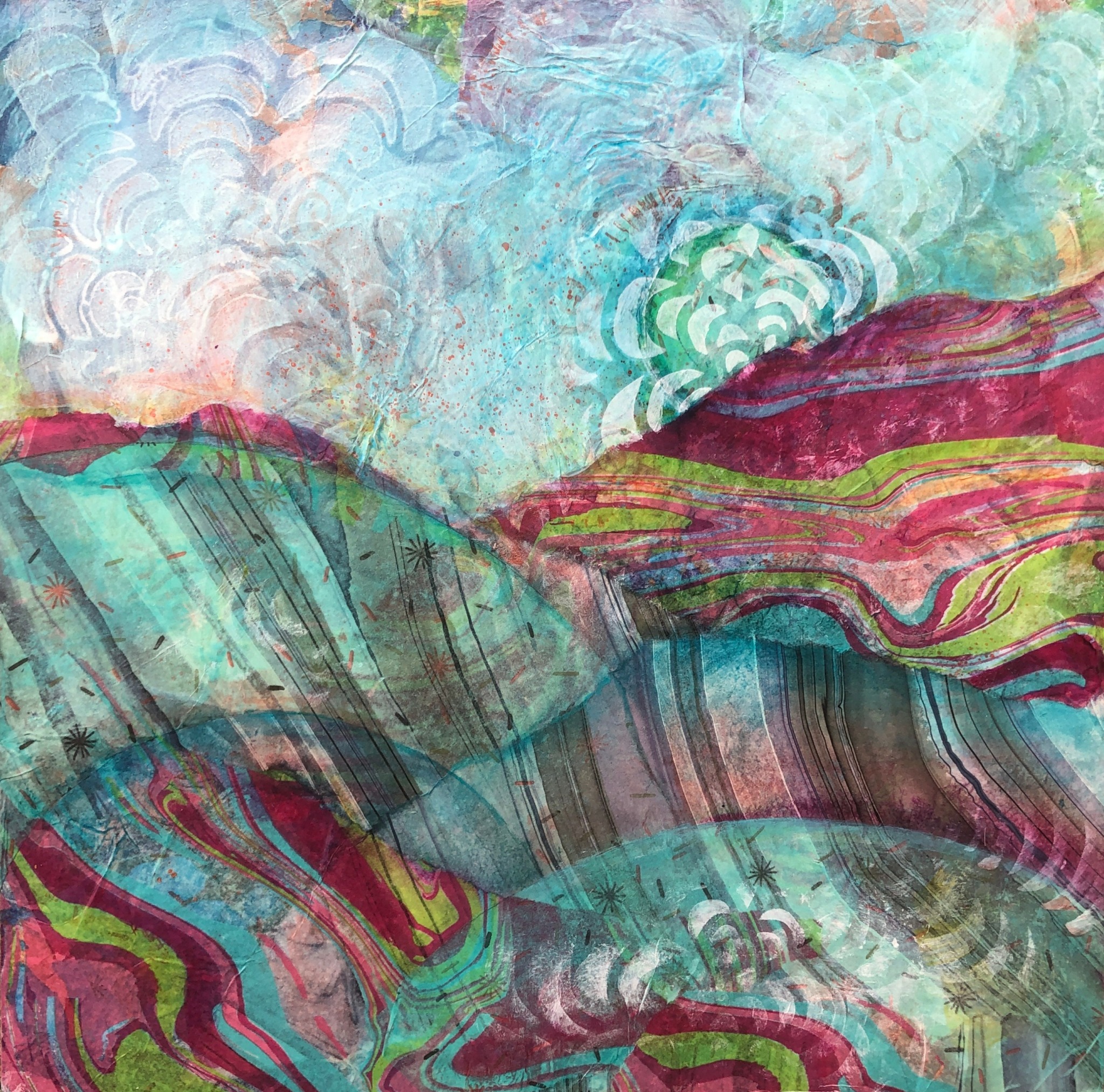 I work in lots of layers when I paint. I love it when all of a sudden something emerges from what looks like a big mess. All of sudden it clarifies what the next few steps in the painting should be. I have found that when I look down and see a big mess, I need to ask for God to guide me. That is when something emerges and gives me insight on next steps. I need to pause and stop trying to solve the problem on my own. That truth applies not only to my painting but to all aspects of my life. He is ready to help me, I just have to ask!
