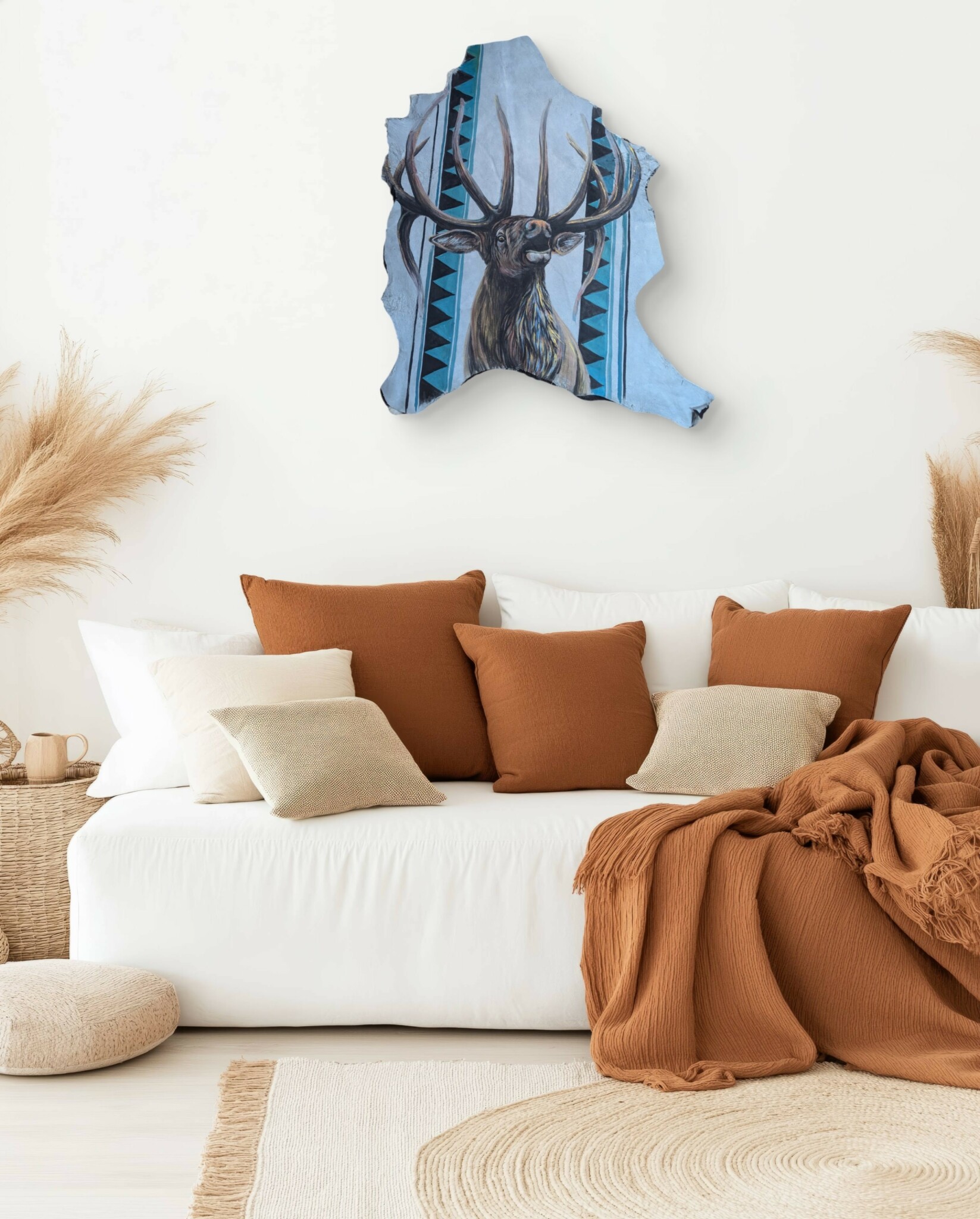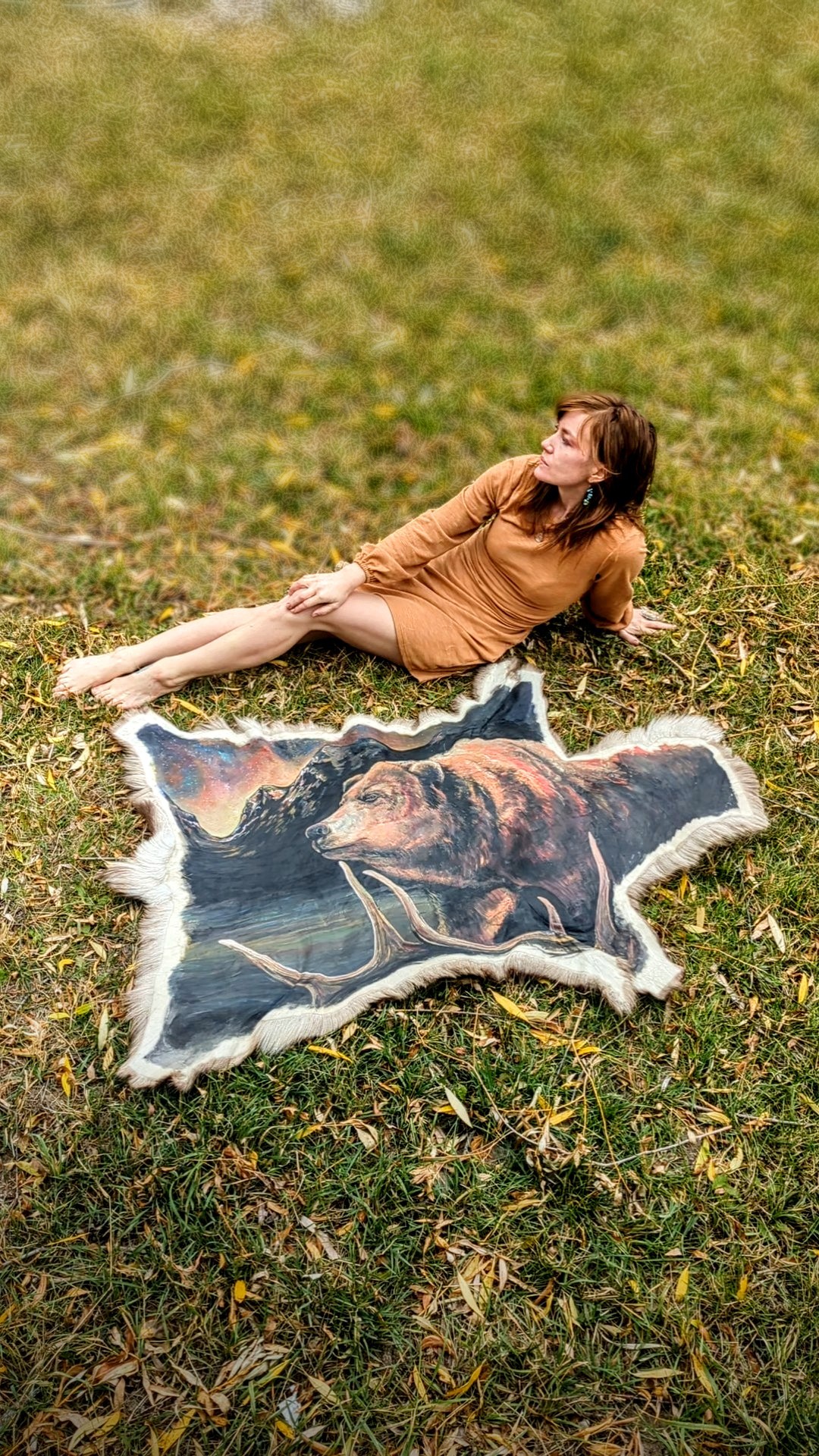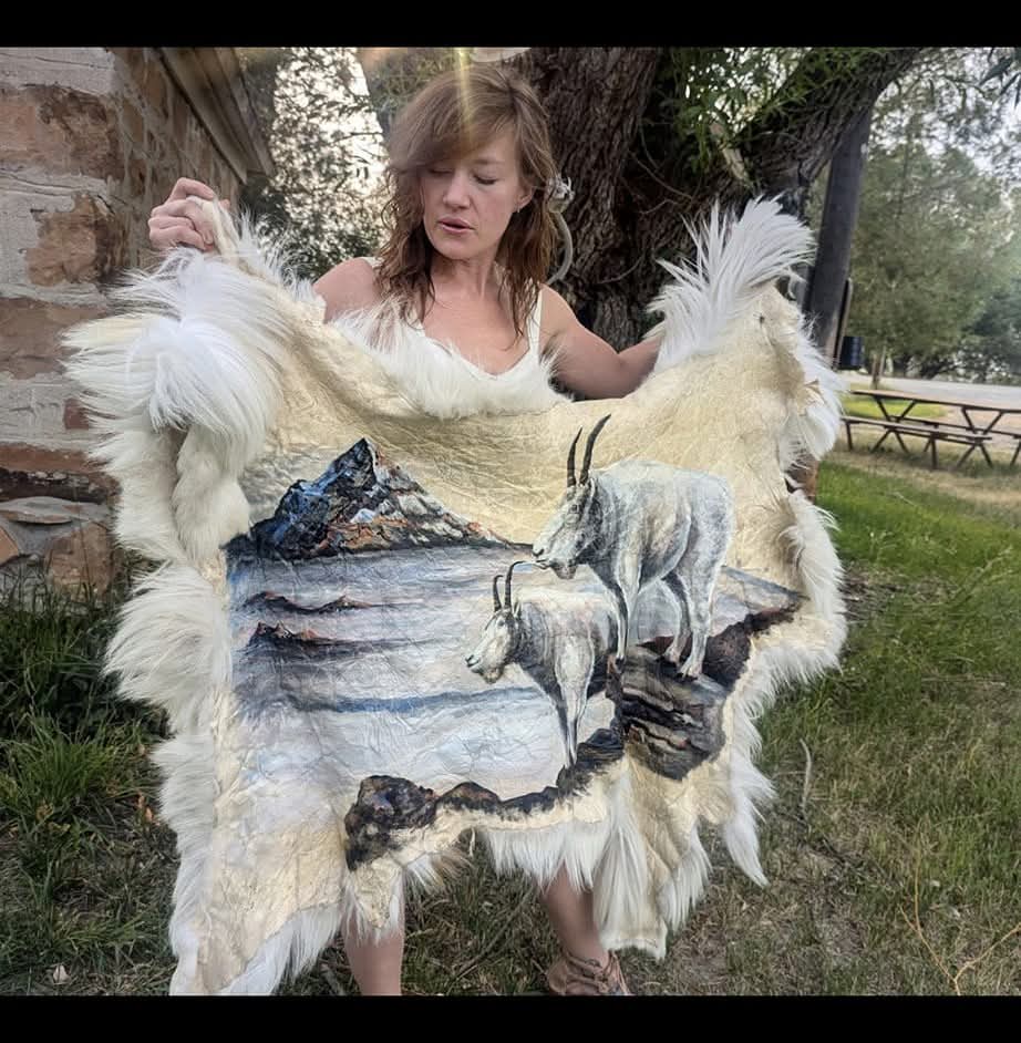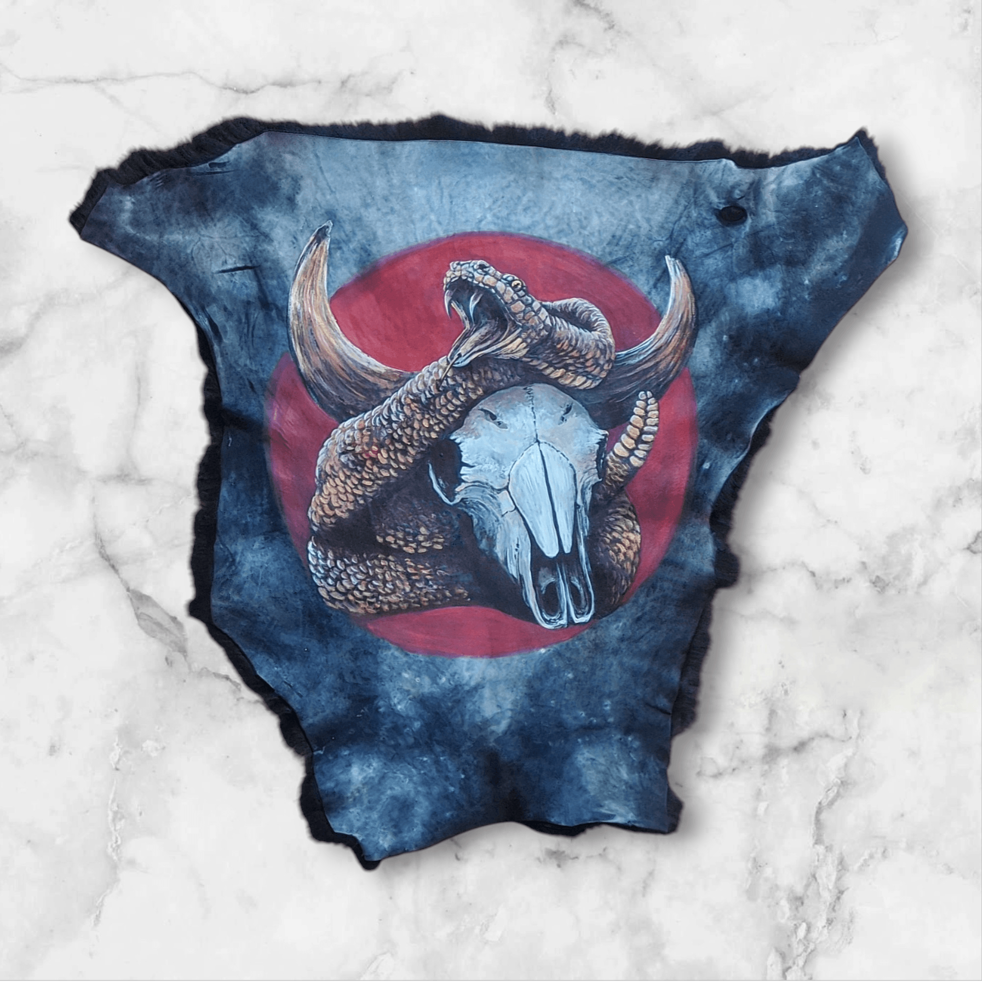 I like to work with unique canvases, particularly being from a large hunting family. I love utilizing the parts of the animal that honestly most people throw away these days. You wouldn’t think it, but a lot of people do and I like seeing those hides not go to waste and it is quite an interesting industry these days to find those. Most people only look at furs and hides for decor or fashion and some of those don’t work for that. Like cowhides, we eat beef every single day and that hide goes to waste unless they decide to tan it and turn it into a rug or something, this happens all the time with deer hides, most people in rural communities will actually set them aside for people to utilize if they can, most of us feel the same about using all the parts of the animal if you can. So, I like that that’s able to be used and I try my best to repurpose old stuff like my leather jackets and apparel, which I usually find vintage stores,
