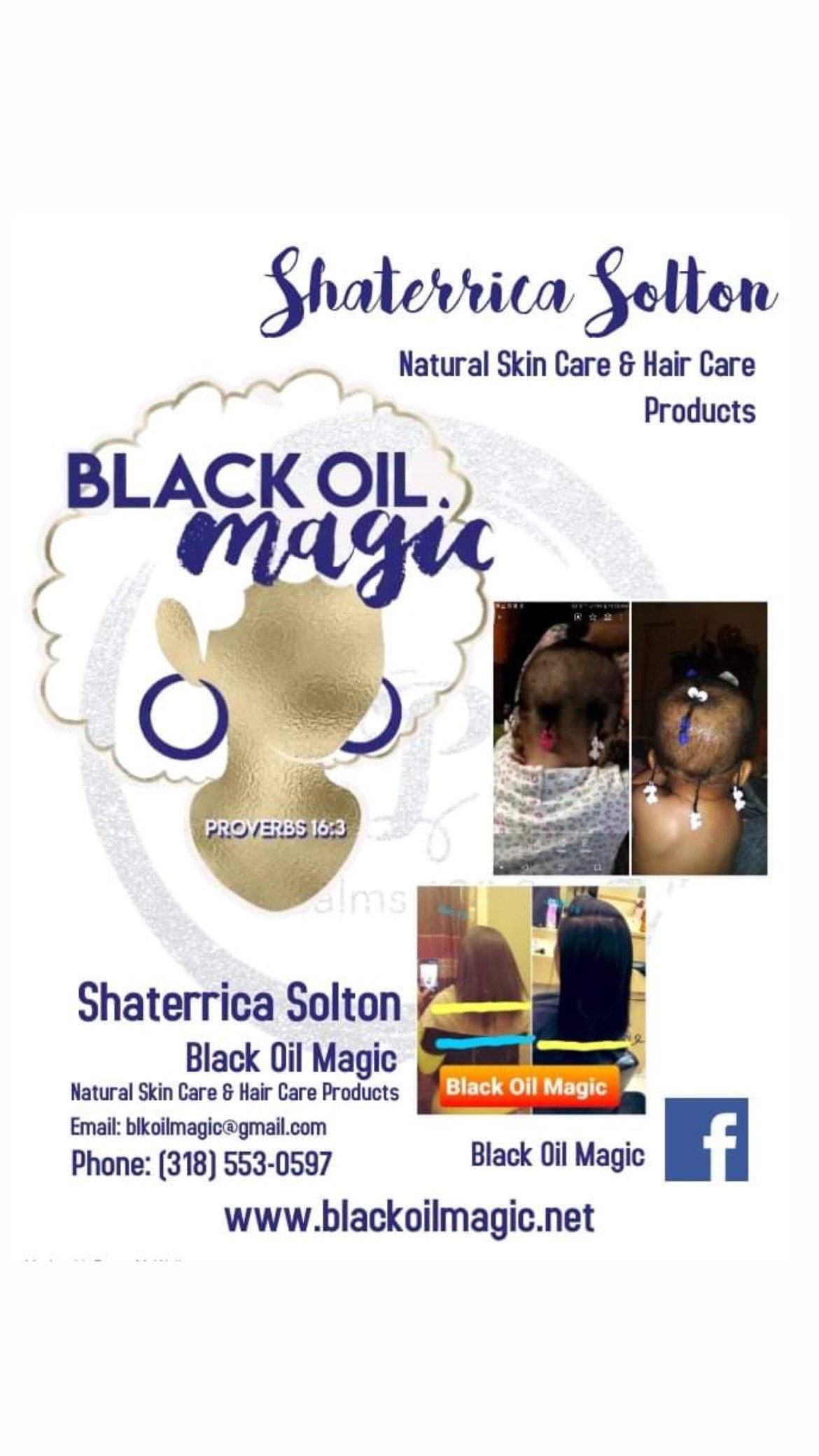 I am a mother, a Certified Pharmacy Technician, and an entrepreneur and I am working on my bachelor’s in Psychology. I started this journey when I started looking for natural ways to treat my then 6-month-old eczema. I created these balms and oils and they worked well but what motivated me was when I accidentally created a hair growth serum. After people started to see my sister’s hair growth progress that did it. That product turned into my baby lol. I am rebranding and right now will be offering a hair growth serum and a beard growth serum. Though the market is saturated with similar products, I know mine stands out because I use my own products and I care about the ingredients I use. I am very proud of the fact that this happened by accident and no matter how many times I say I’m not doing it anymore I have people requesting my product even if it’s not in a cute package they still want it!