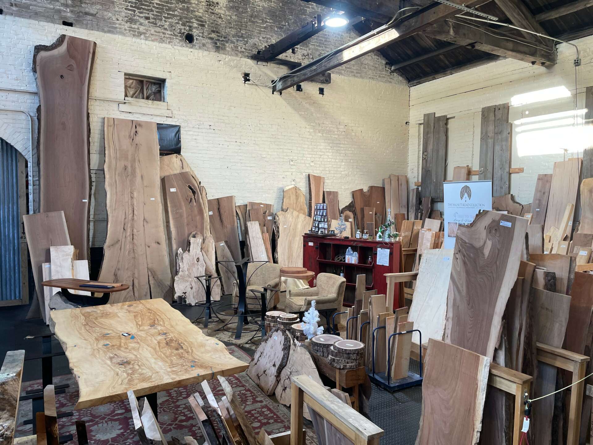 Where to start? Personally, I believe that the thing that sets us apart from other businesses around the area is our atmosphere. Our building is a massive 25,000 sq/ft warehouse in Columbia, PA that was once home to the Columbia Werks Company (train repair shop). We have 35-foot ceilings with no vertical beams/supports only the ones that run across the shop from wall to wall. The building was built in 1840 and was home to the Werks Company from its inauguration till 1900 when the building was bought and renovated into a commercial laundry machinery factory. The building has such an amazing industrial feel with oil-stained wood, 4” thick tongue and grooved flooring, original belt drive systems in the rafters and so much more!