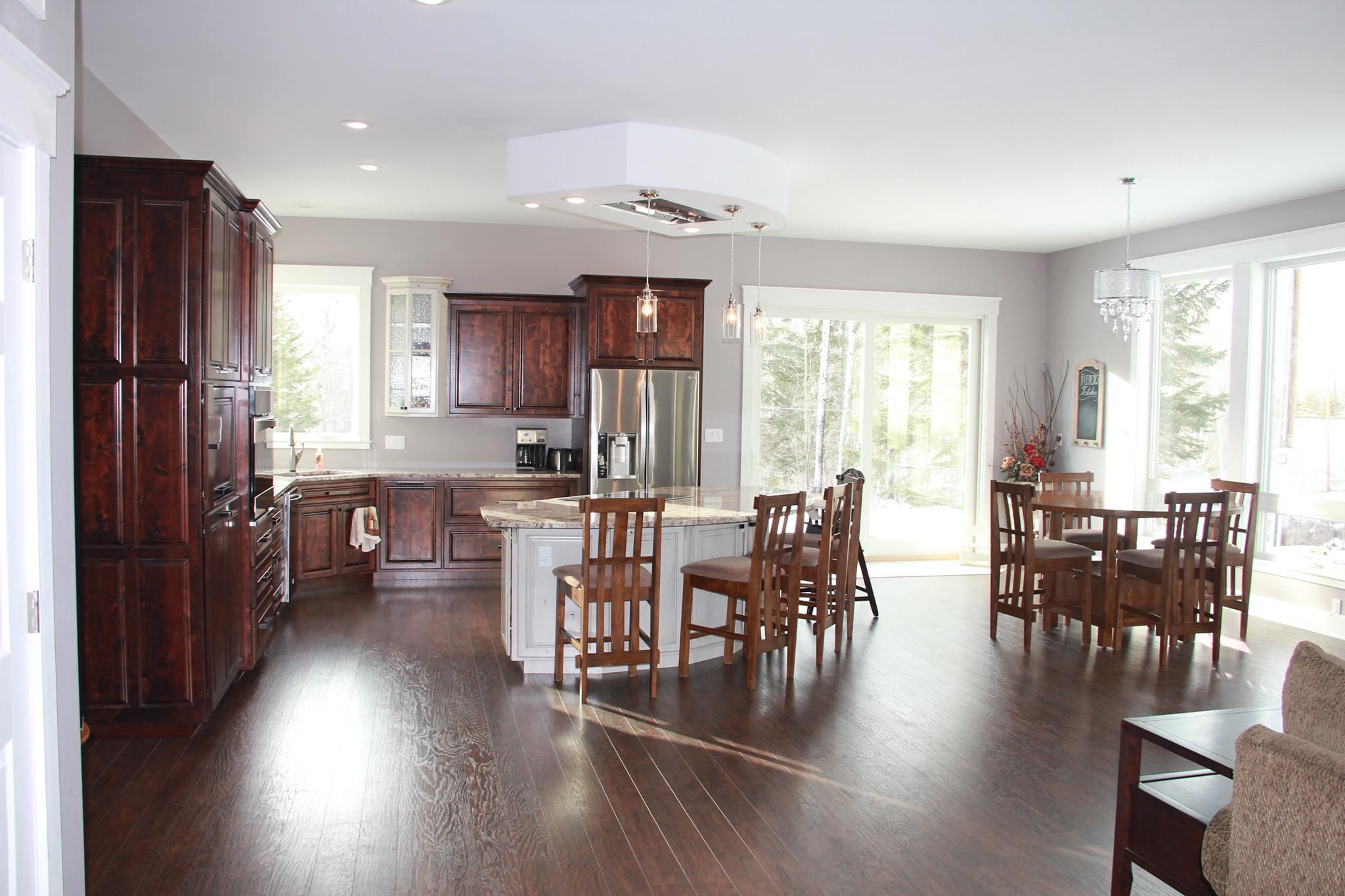 We started in 2006 with the idea of building rustic log furniture. The market was not very strong for that, but we soon began getting requests for other types of woodworking, and that changed into requests for kitchen cabinets. We now are about 90% kitchens, bathrooms, or closets. We do high quality work, and use high quality materials. We actually do a lot of things I’ve never seen in another cabinet shop. But we feel our customers should get the best product we can produce. There are very few components that we buy in at this point. We buy sheet goods and rough lumber and build everything from there.