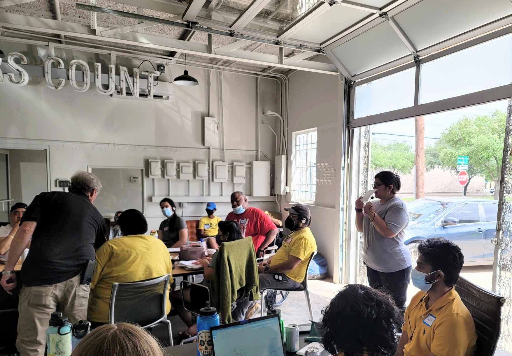 This comes from community investing in me. I completed the Interpreting for Justice program sponsored by Avenue and facilitated by Tecolotl Collective in the Spring of 2022. I was invited to be a community interpreter a month after graduation. I was invited to facilitate the training to support residents becoming interpreters about 2 months after that. During this time, I was approached by Texas Appleseed to be part of a research project to create policy recommendations for buyouts based on participants’ lived experiences.