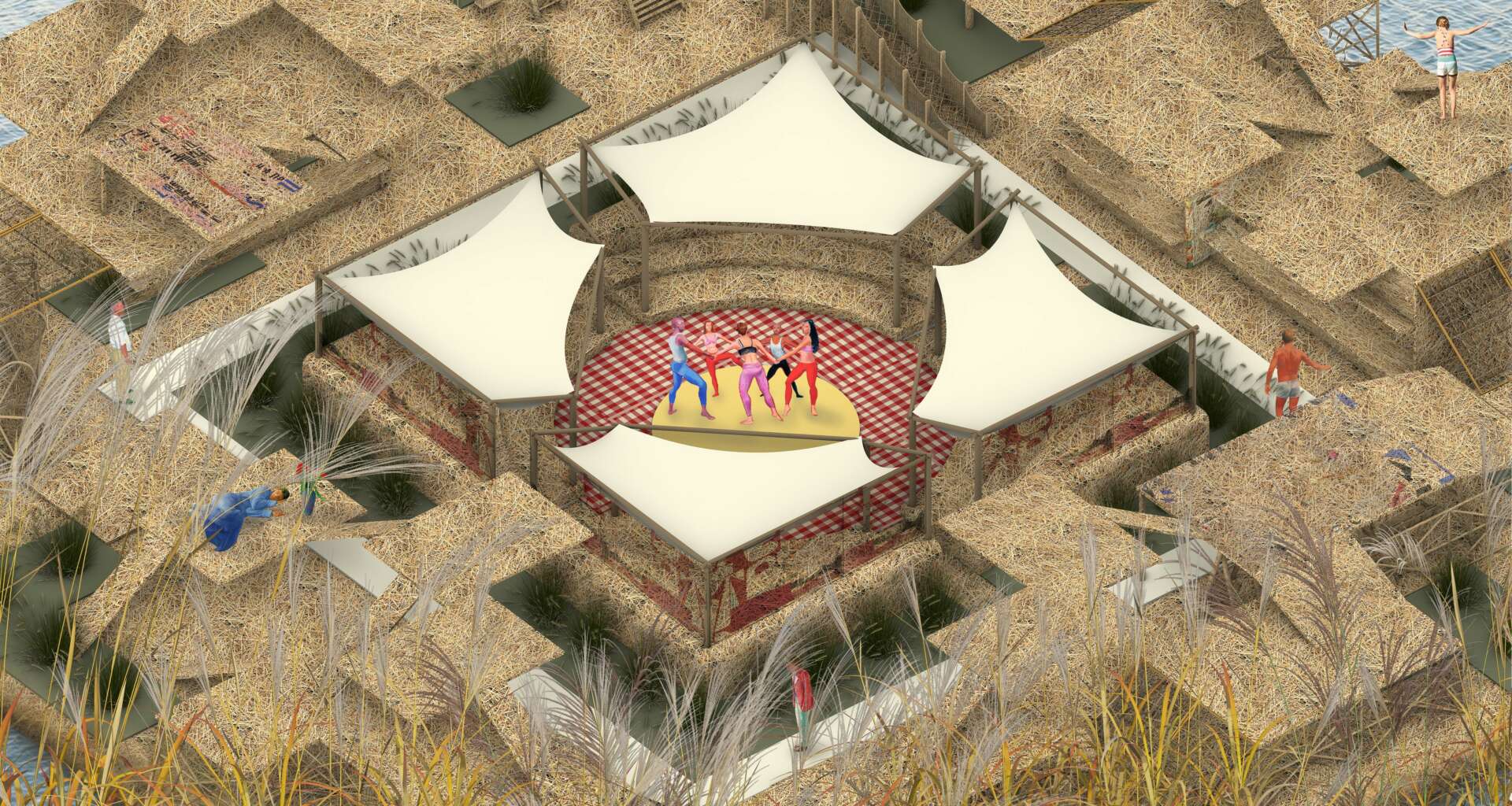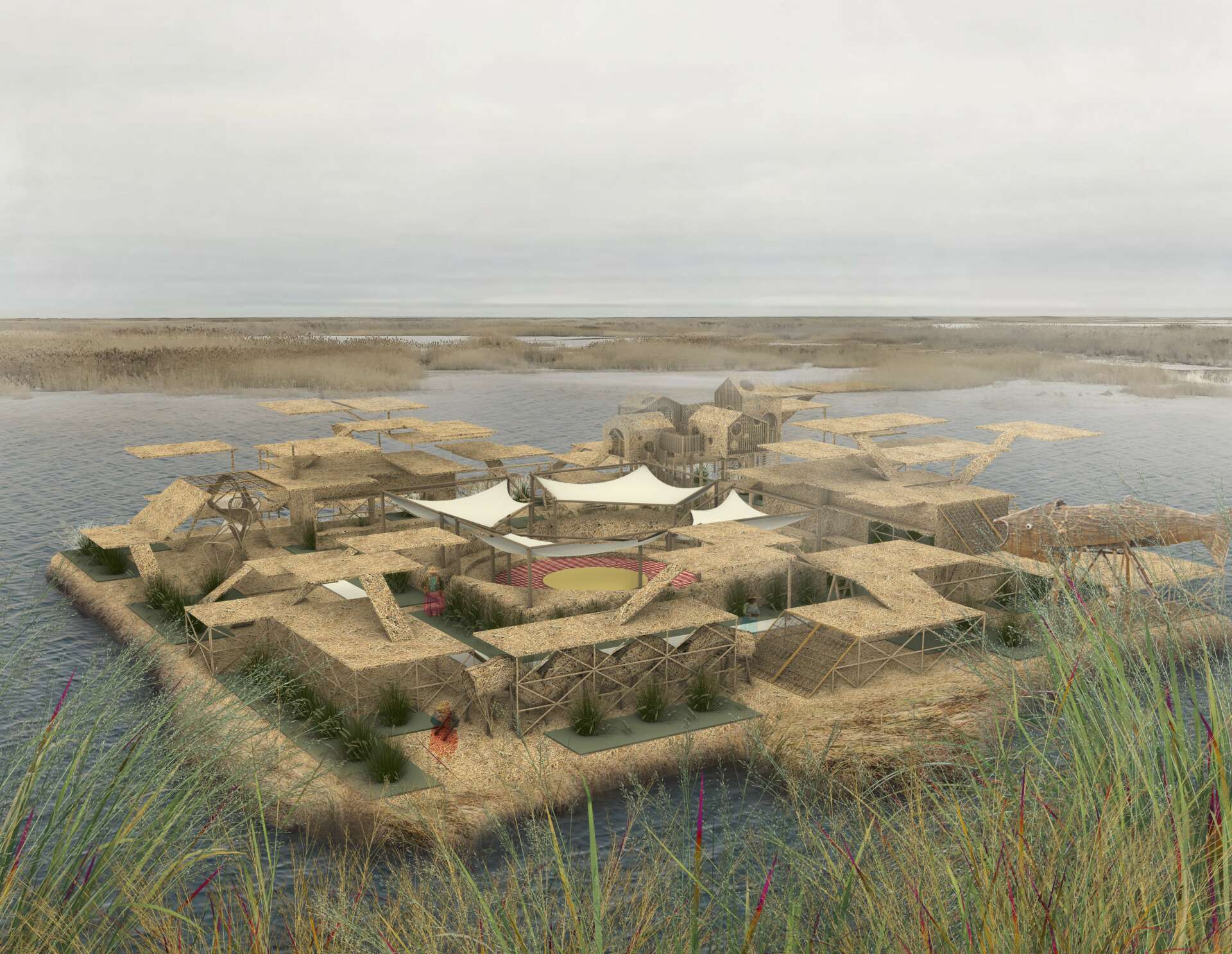 I will introduce a project that I really like. It’s a space renovation project focused on material utilization, located at Lake Titicaca in Peru. I chose this location in advance before conceptualizing the project. I am particularly fond of the local history and culture of Lake Titicaca, including the traditional attire of the people. Learning about the existence of over 140 artificial reed islands on this lake intensified my interest in the area. Consequently, I designed a floating park made of reeds.