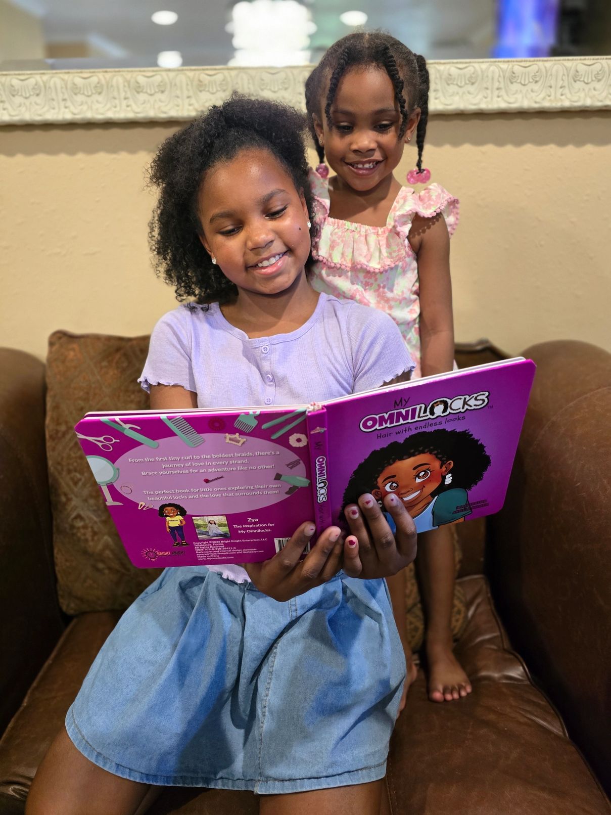 My Omnilocks was born after a conversation between my then nine year old daughter, Zya and me. Zya wanted her hair straightened for an event and I told her that due to the humid weather and her high level of activity, it wouldn’t stay straight, therefore it wasn’t worth the effort. Zya had a moment of feeling insecure and defeated because her hair wouldn’t stay straight like most of her friends’ hair. I immediately noticed Zya’s disposition and began telling her why she is so blessed to have hair that has superpowers! Her hair can take so many different forms and that should be celebrated. Zya’s disposition went from a look of defeat to one of sincere pride! I then followed divine guidance and decided to share that same message with little brown girls everywhere! I immediately had the vision of a rhyming board book with a face cut out and changing hairstyles as the pages turn. I woke up in the middle of the night and wrote the whole thing. Although Zya was nine at the time, I knew I wanted the book to be for younger children. I knew that 90 percent of brain development happens between the ages of 0 and five years old and I wanted to positively impact the self esteem of girls long before the world told them how they should look. For many little brown girls, hair days can mean a long and even painful process, but the outcome can be gorgeous! From straight to curly to braids to locs, their locks are a gift that can do all things, thus the name My Omnilocks! I knew this was a strong message that would resonate with little brown girls, parents, teachers and beyond!