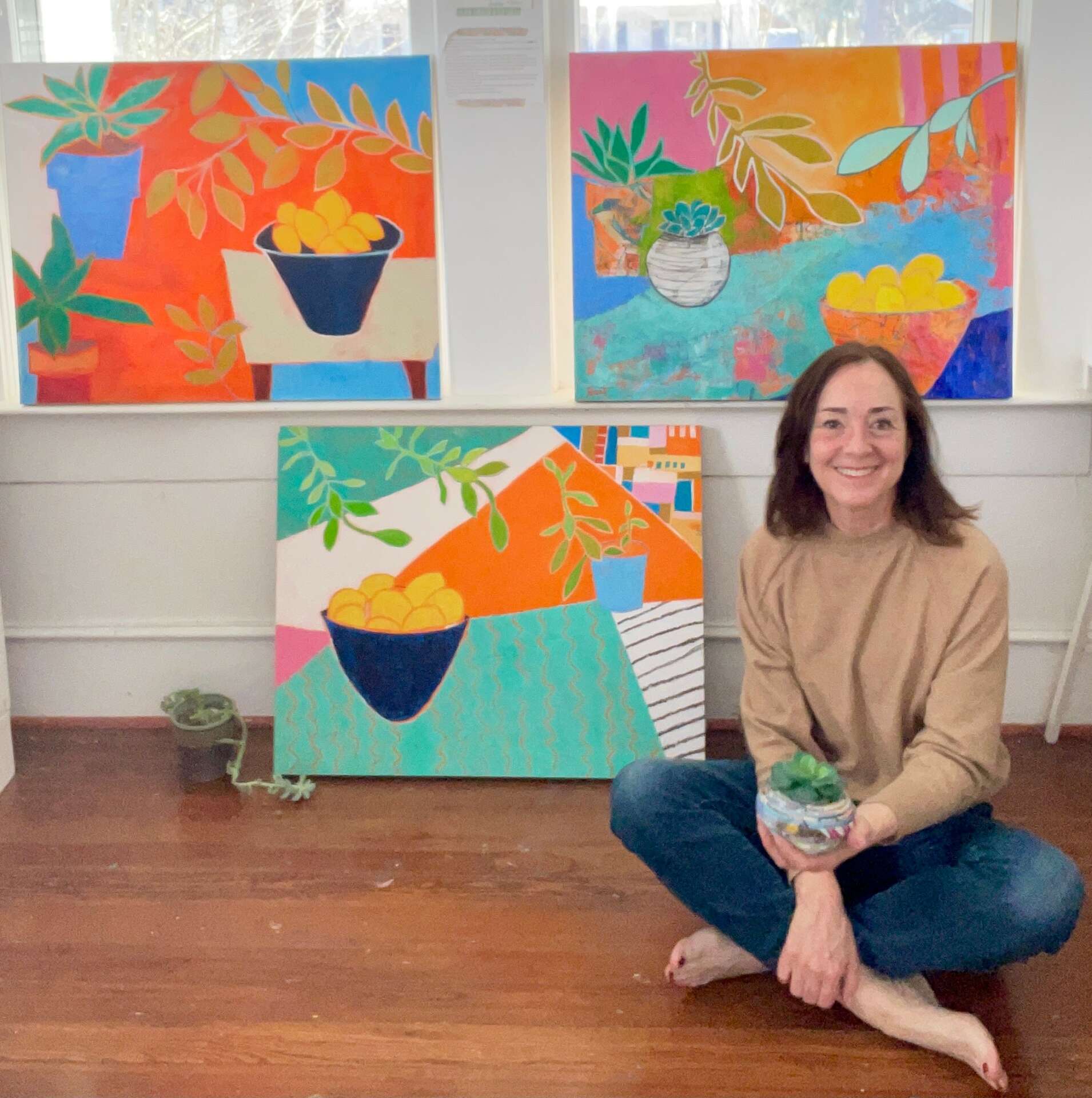 To be honest, there are moments when I wonder where I’d be if I had started earlier. And yet, I’m grateful for the breadth and depth of my life experience that I bring to this new undertaking. My years as a dancer greatly influence my approach to art. I was a contemporary dancer and now I’m a contemporary painter. Anyway, this woman of a certain age has learned that regret is wasted energy. Yep, I’m right on schedule.