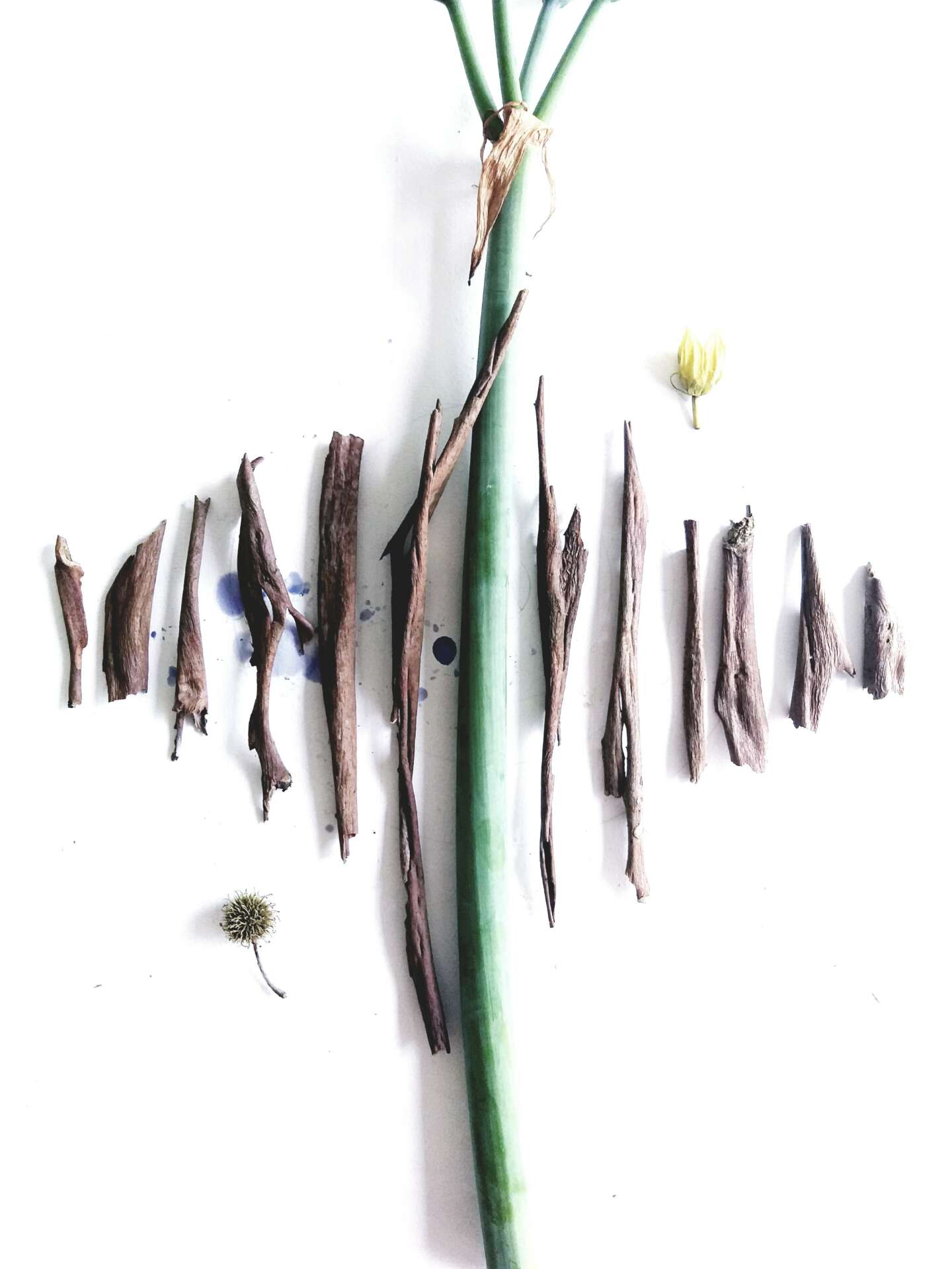 I used to paint of nature but I didn’t have energy to paint in that moment. I started to use these flowers and leaves as materials to practice focus and clarity. It has become a form of diary, reflecting certain states of mind, joyous sometimes and unclear sometimes.