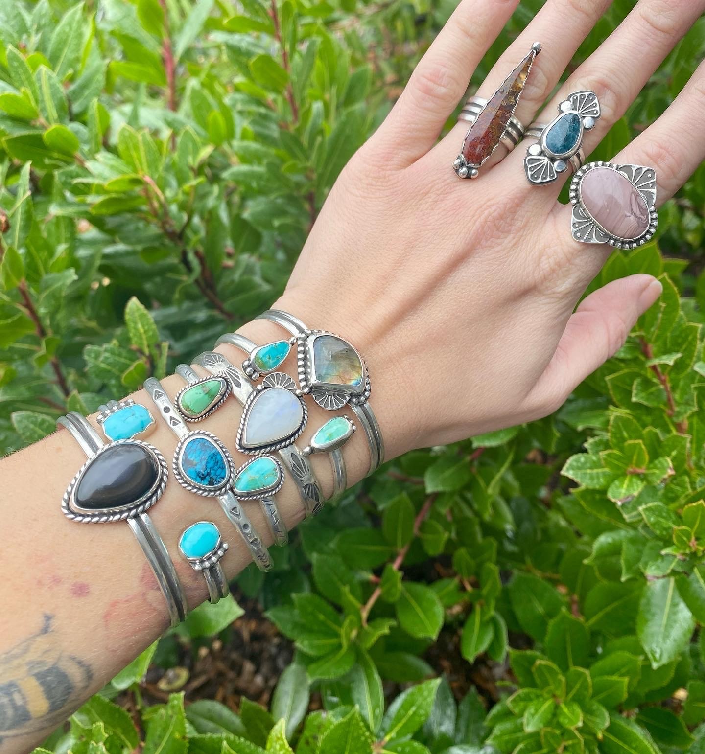 I started Malachite Silver Co. during peak quarantine, mostly to occupy some of my down time, but it quickly turned into something so much more. I have fallen head over heels for every aspect of silversmithing and starting a small business. Fast forward 3 years and I have quit my day job and jumped head first into my business. I am pursuing my dream that I did not even know I had. I am here to bring you jewelry that makes you feel good, not only when you wear it but when you purchase it. I am focused on sustainability through every step of my creative process, from where I purchase my stones to how I get your products to your doorstep and every step in between. I source 100% of my materials from other small businesses and am committed to using quality, sustainable packaging.