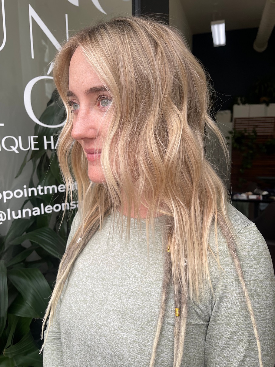 I am a San Diego hair stylist specializing in blondes! My career started 11 years ago in Orange County. Since then I have worked in Los Angeles, D.C., and now San Diego. I am currently at the cutest little boutique salon, Luna Leon. The owner, Jessica Tyransky, is a long time friend of mine. The space is my exact vibe. High ceilings, big windows, only 4 chairs, and soooo many plants!