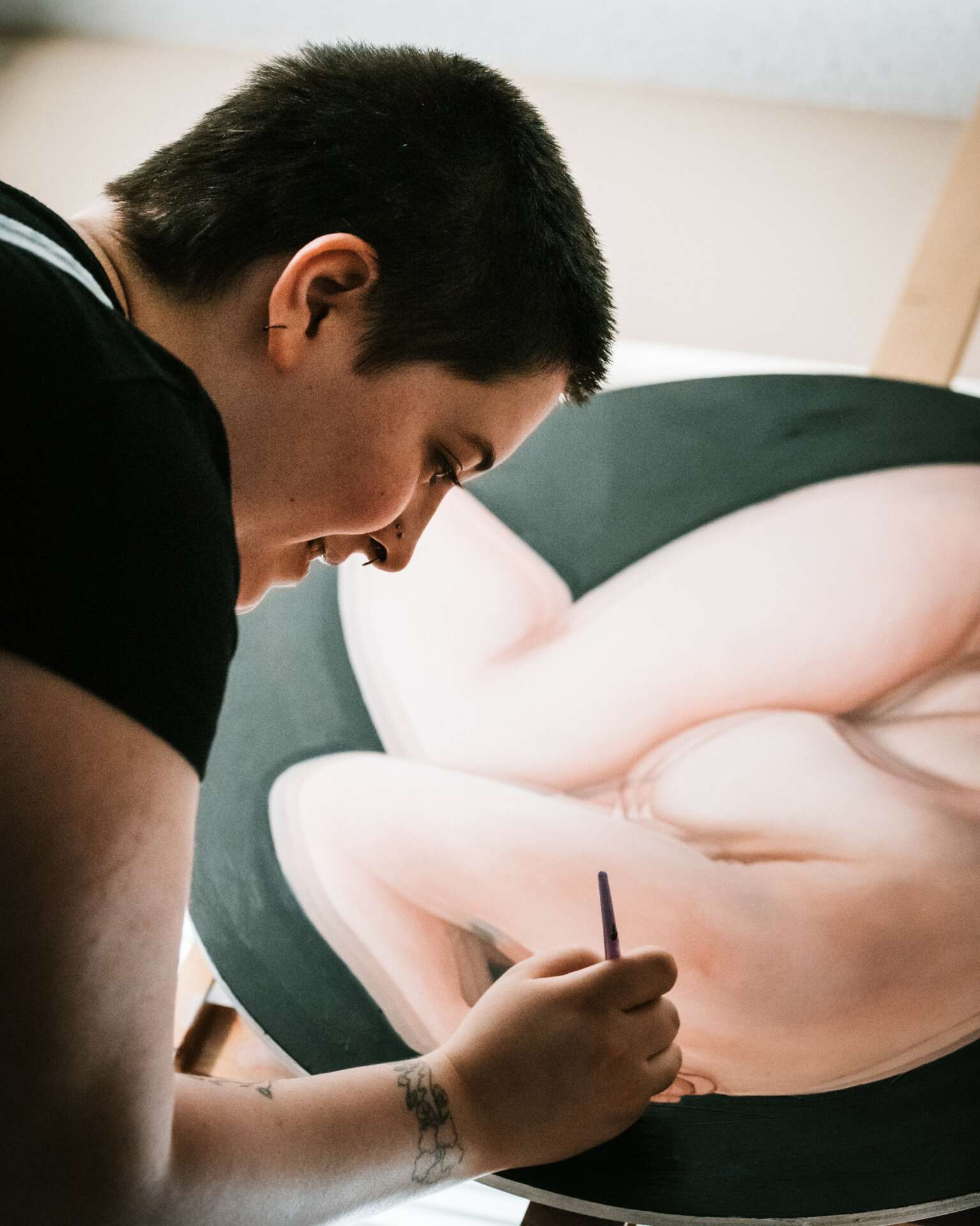 The most rewarding part of putting my work out there is also the scariest part, which is how personal it is. I know every artist is putting a little piece of themselves into every painting, but I take it a step further. I use myself as the subject in nude art discussing body image and mental health overall. It’s incredibly vulnerable work, and I’m often actively in the trenches dealing with these struggles in real time. The rewarding aspect of it is that I feel seen and understood and always less alone by putting it out there. Communication is also a struggle for me, so it feels like this is a deeper look into my brain that people wouldn’t get otherwise.