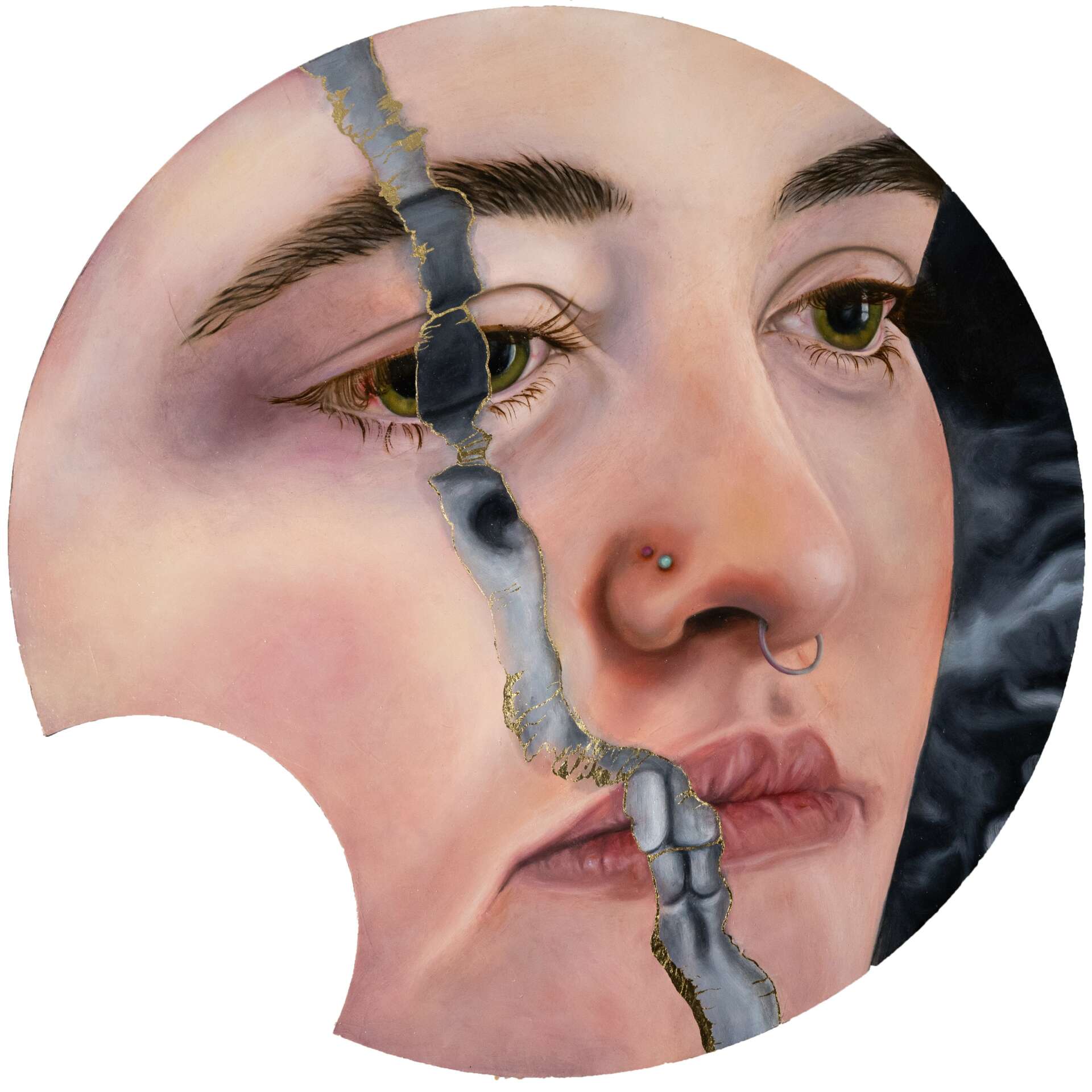 I create abstract figurative oil paintings on custom wooden panels, and accompanying installations, that lean toward magical realism. As far as their message, I make art about the universally human journey of learning to live in our own skins. By facing myself in paint over and over, I encourage my audience to see themselves in each piece, as I explore the relationship with my own body, healing, forgiveness, pain, compassion, fear, and mental illness. The goal of each piece is to share my own vulnerable experience, hoping that it encourages my audience to do the same.