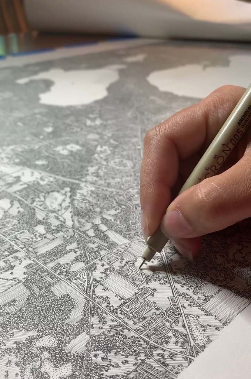 I pour hours into each map. I spend time looking at the right composition that will make each place look the most interesting. I use math to ensure the scale and proportion will be as close to accurate as possible. I think of past memories I have of a place or even go visit to remind myself or see for myself what the area looks like. And that’s all before I even begin drawing. I am not an illustrator, I draw exactly what I see and have little creative ability to merge areas or add illustrations or other unique features to maps. It is very hard to explain the energy I put into each piece, especially because in the end it just looks like a little drawing of a map.