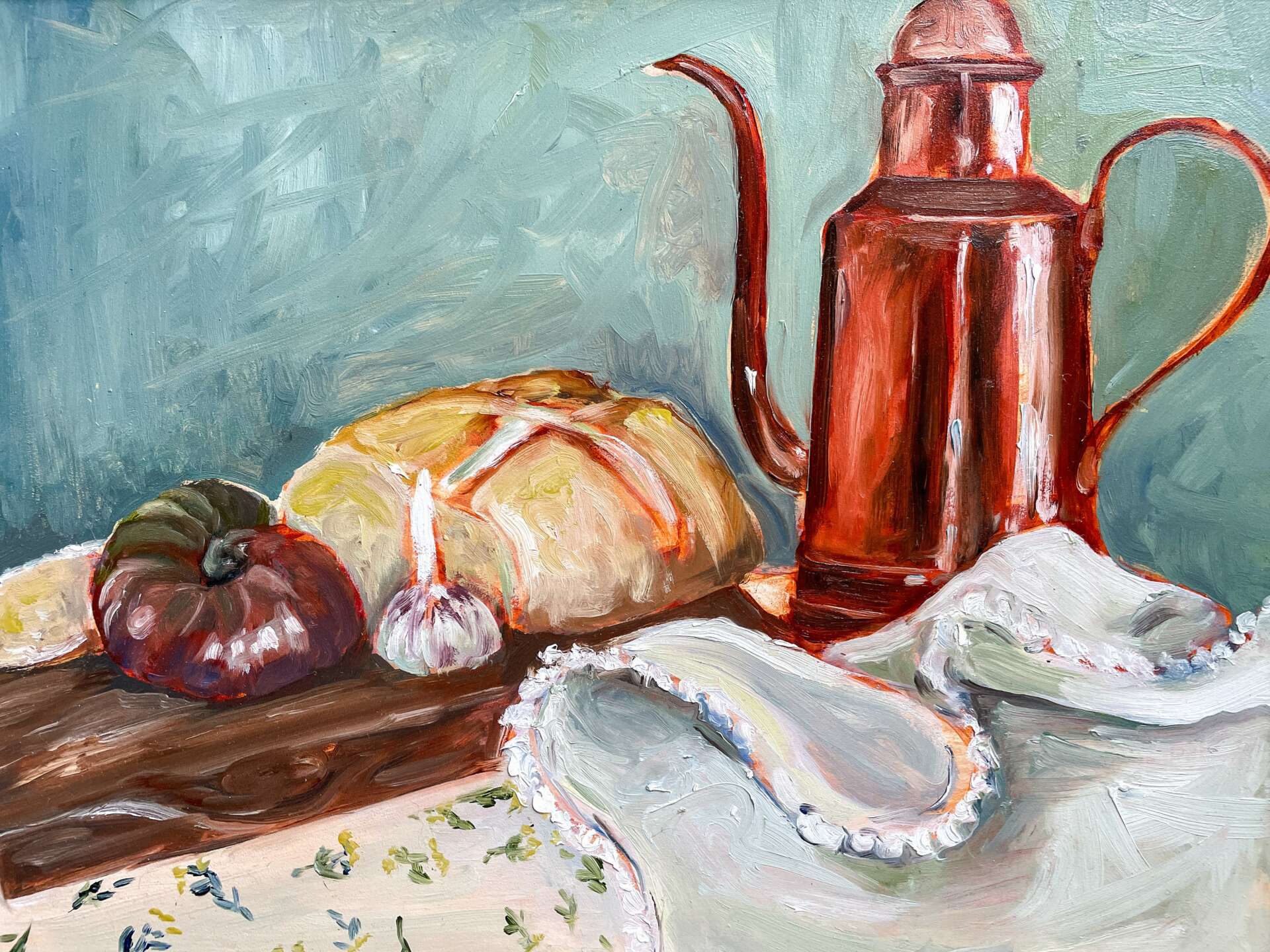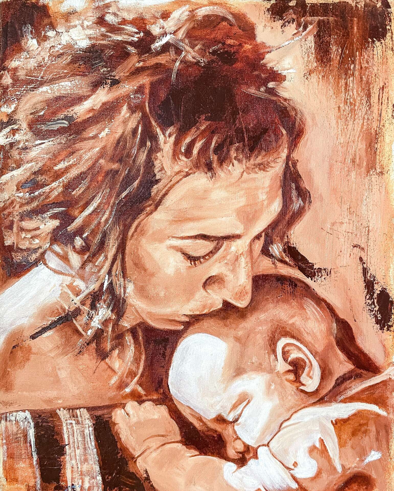 I am a visual artist, and I specialize in figurative and portraitures works. I have been running my business and creating art professionally for about three years, and it was completely accidental. Around 8 years ago my husband (then boyfriend) noticed me drawing one day and suggested I had talent. He told me I should pursue art, and so with his encouragement I signed up for an art class at the local community college. I had always been a creative person, often painting/drawing/making something in my free time. However, I had a very talented sister and an incredible artist friend and so I didn’t believe that I, too, could be an artist like them. I had never planned in being one, but now looking back, it makes sense that this is who I am today. I practice and continued to learn how to paint throughout the next couple years, and eventually started sharing my work on social media. Friends and family started asking for commissions, and it built to strangers asking me for my work, and I soon realized I could potentially run a business using my talent and skill and passion for art. Fast forward to now, I run a small but meaningful art business where I create custom paintings and originals for clients, galleries, and shows. I had to step back from working primarily with commissions and now incorporate my own works, which helps me from becoming burnt out. Some of the most important work I do is creating portraits for non-profit organizations for childhood cancer. I have painted 10o’s if portraits, and they are all such a blessing to me.