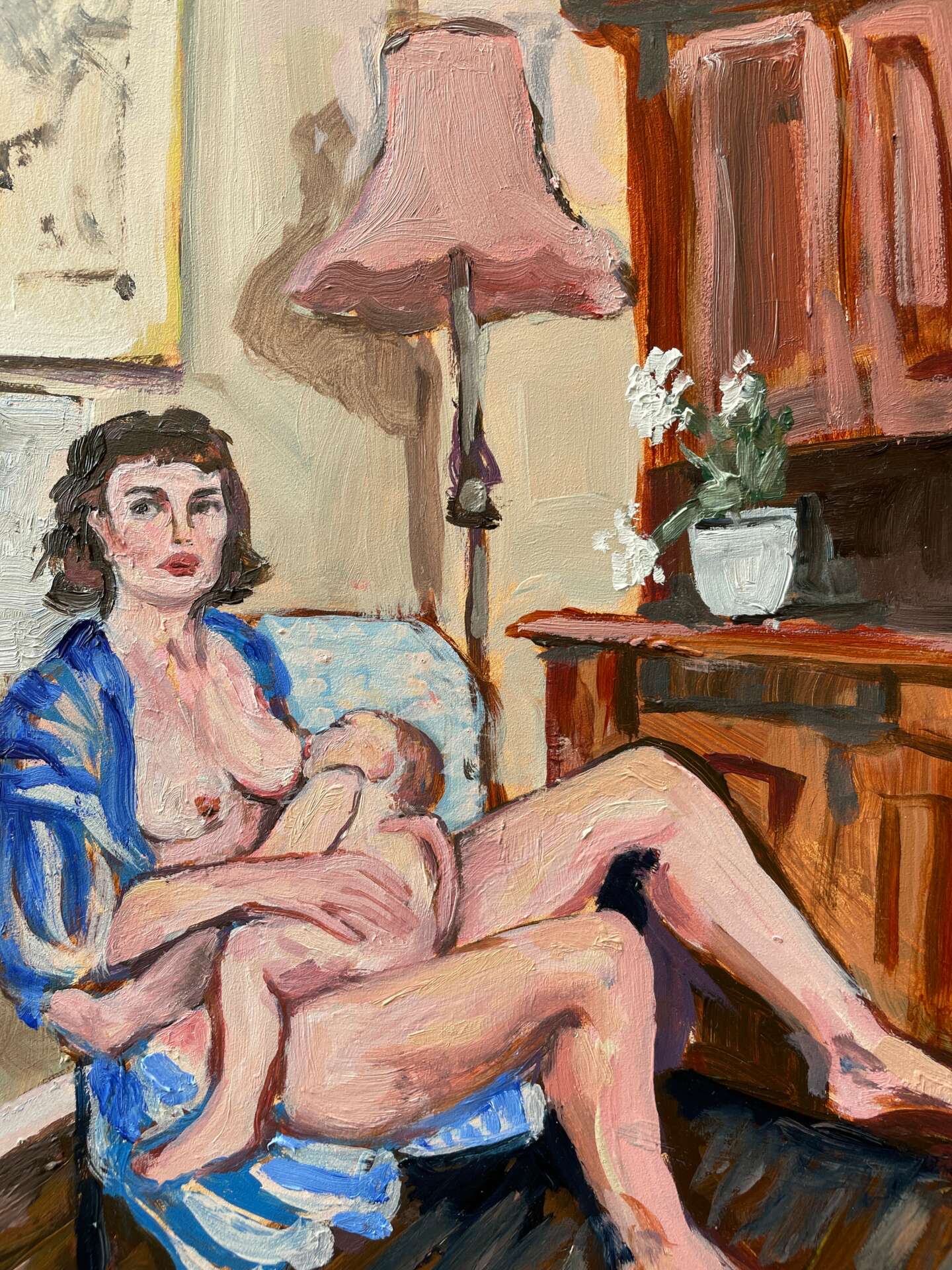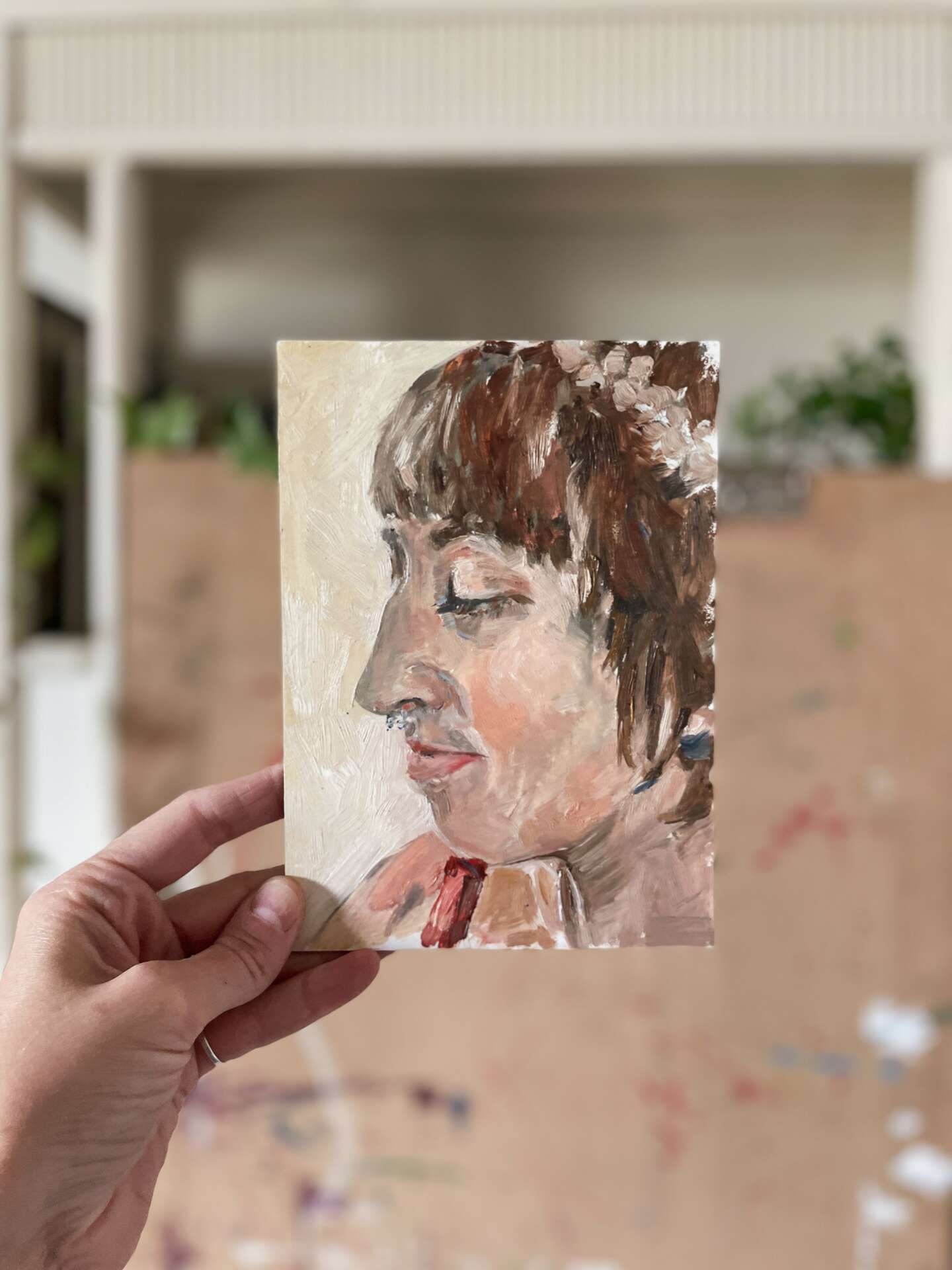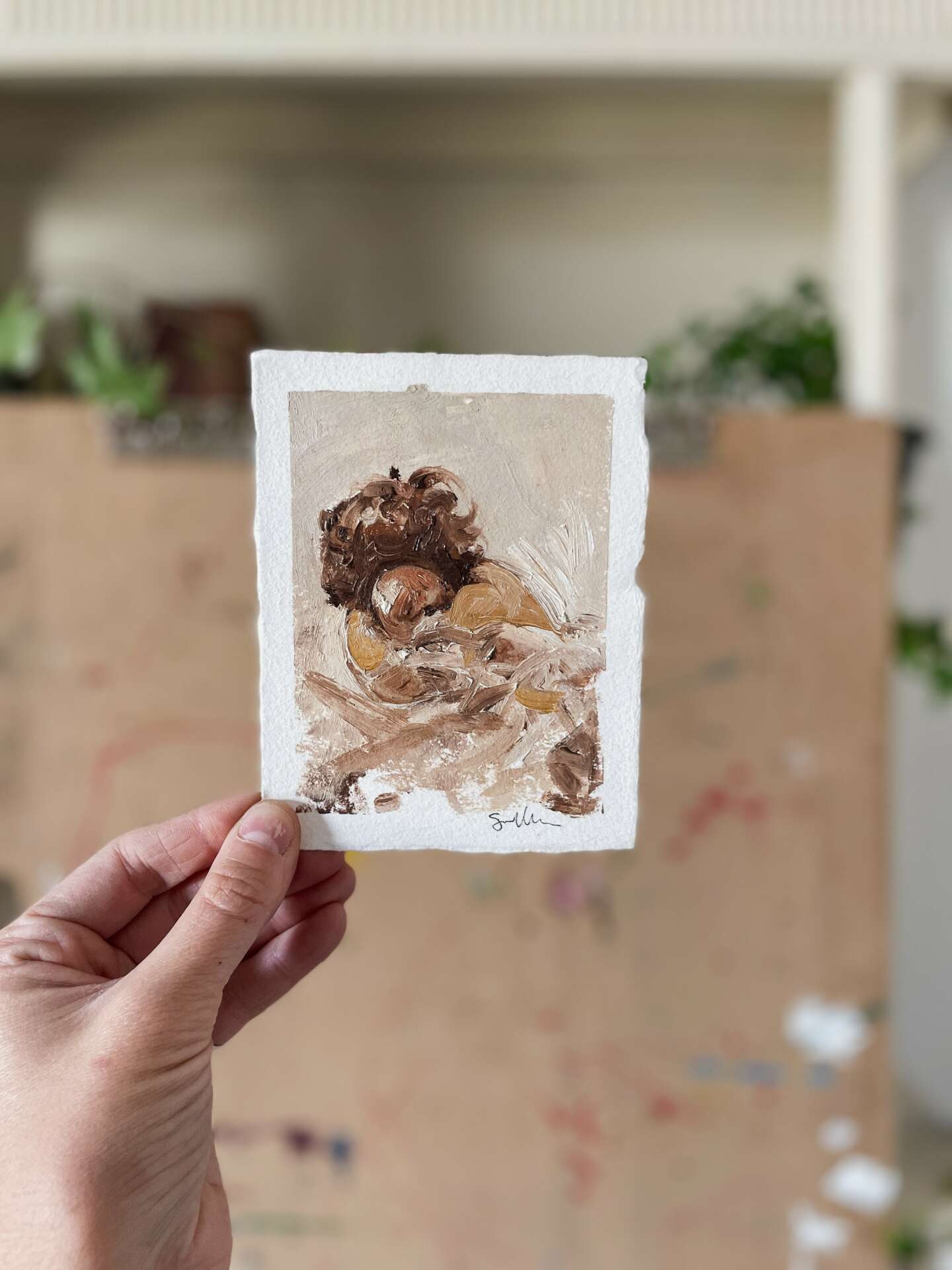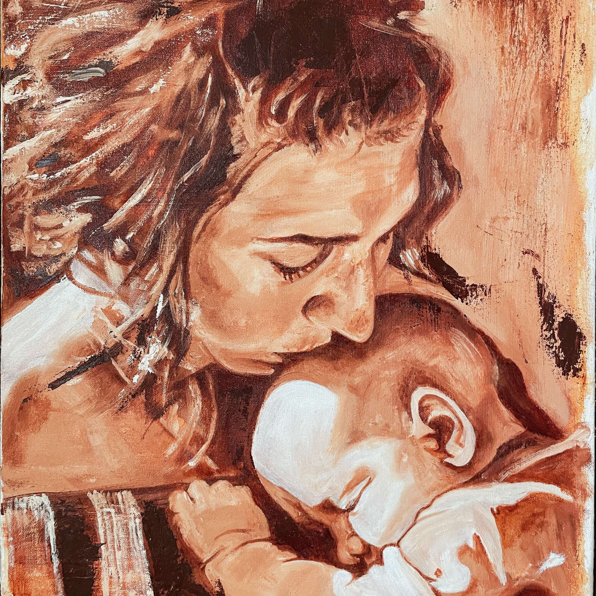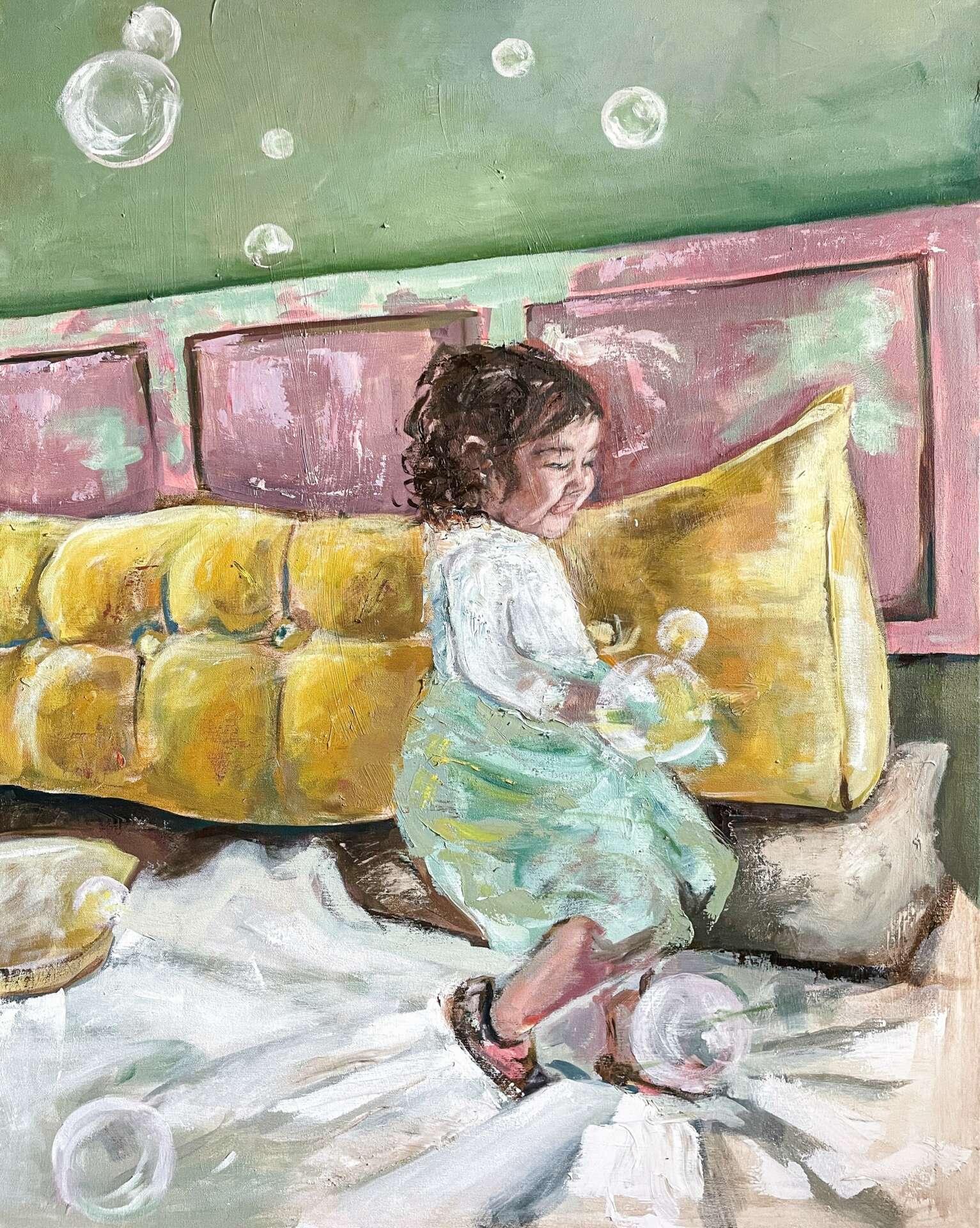 After I had been studying art for a few years, I started to share my work on Instagram. By then I had a second child, and I was constantly inspired by how wonderful and beautiful they were. I’d never planned on being a portrait artist, or was just the subject matter that spoke to me the most. People started seeing my work and asked me to paint their loved ones too, which is how my business got started. I continue to do portrait commission, work, but I’ve also expanded to figurative art, still-life and landscape. At one point in my career, I came across a post about childhood cancer and reached out to them, offering a portrait as a gift to the family. Little did I know that I’d be working with her years later for her non-profit company Glimmer of Hope Foundation. I am honored to paint portraits for Ali and the families that she supports through her foundation, it is some of my most important work. Painting children, mothers, breastfeeding portraits, and daily life is what really speaks to me. I seek to explore the mundane, showcasing its beauty, responding to the world around me with my paintbrush and pencils. Being an artist is so much more to me that what I create, it’s who I am, it’s how I see the world.