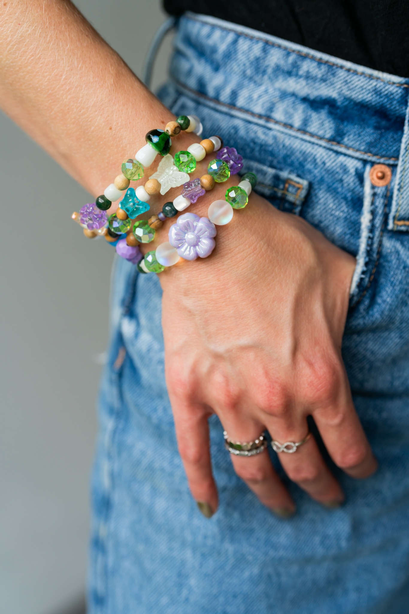 The premise behind my brand is that everyone should be free and proud to be themselves. That’s why I stay true to charities that matter to me, why I started designing accessories, and why I love making custom creations for my customers. There are very few custom requests that I would say no to, because as a person and a business owner, I respect that we all have different views, unique ways of expressing ourselves, and our own perspectives on life. I help people make the perfect gifts for family and friends, or the unique pieces that they can’t buy in stores that give them the confidence they need to succeed during hard times in life. My customers wear my bracelets to chemotherapy, my good luck charms to job interviews, and my necklaces to remember loved ones. Even my non-custom pieces can be combined in creative ways to create unique bracelet stacks and jewelry pairings. A gold chain is great, but a gold chain in juxtaposition to a neon happy-face chunky piece is something else entirely.