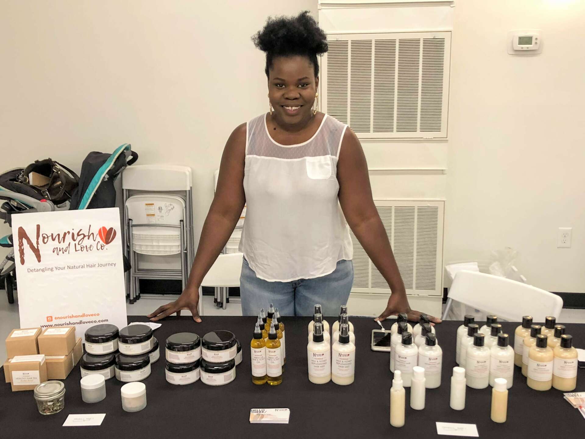 I am a Mom of two beautiful boys, 5 and 1.5 years old and they keep me extremely busy! Beyond that, I am a Healthy Hair Specialist and Licensed Cosmetologist and to be honest, to me it feels like I fell into the beauty industry because at the time when Nourish & Love was birthed in my parent’s kitchen, all I was trying to do was make a product for my perpetually dry natural hair and I made a balm for my dog’s hotspot. I was tired of having to make concoctions to keep my hair hydrated and moisturized. So I decided to try making a product of my own, and Youtube was barely a thing then, so it’s not like I could just type in what I needed into Youtube University. I had no clue that the two products I made that night would lead me to where I am today, headed into my 5th year in business.