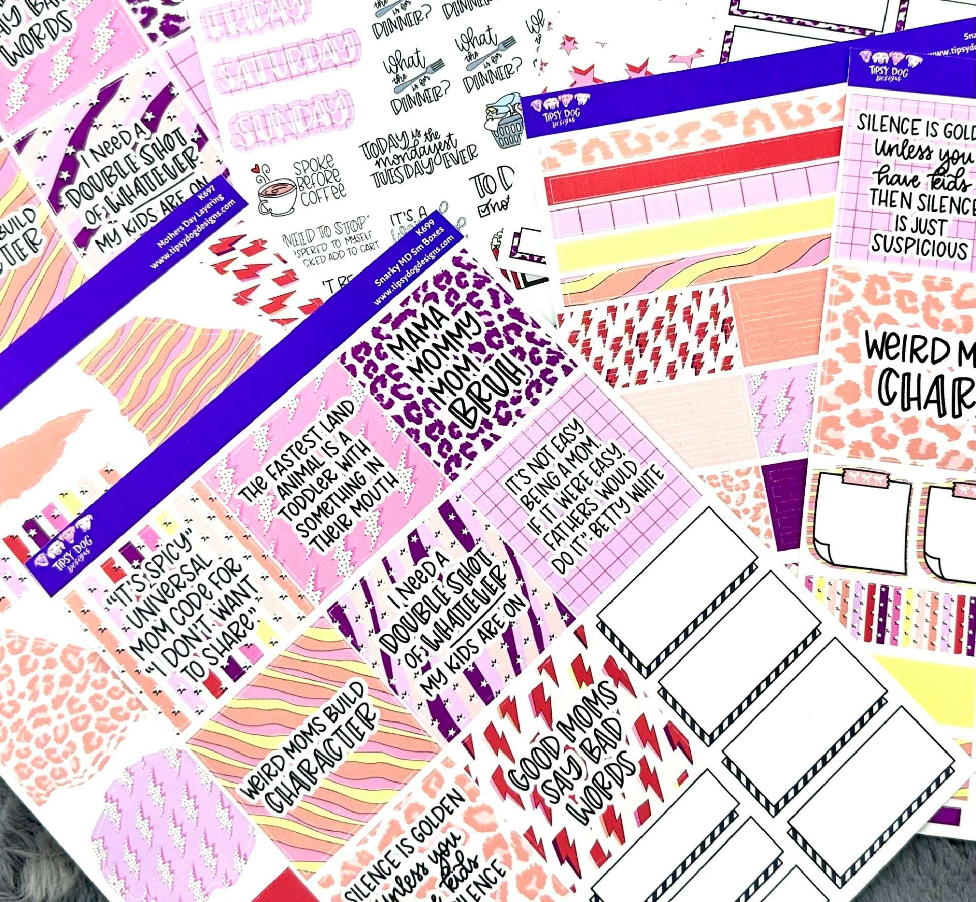 Now Tipsy Dog Designs is printed stationery items such as stickers, notebooks, pens, washi tape and tumblers. My business offers a unique type of hand lettered snarky product that can bring a smile to your face on the worst days. I still can’t believe I get to do this full time!