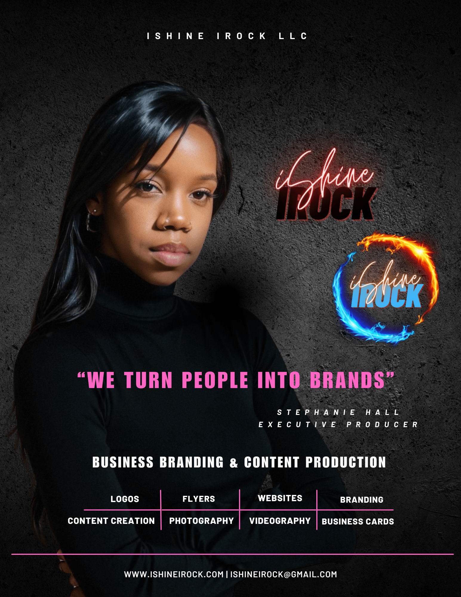 My branding and marketing business, iShine iRock LLC, is a dynamic branding company dedicated to transforming individuals into powerful, recognizable brands.