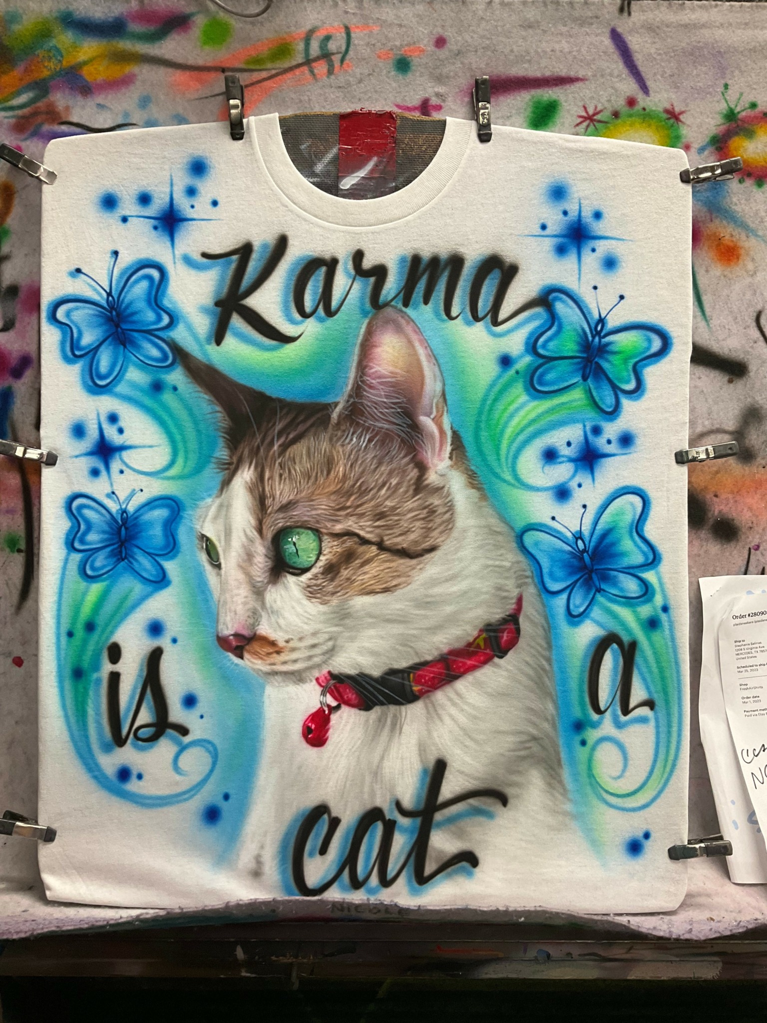 What sets me apart is my dedication to craftsmanship and authenticity. Each piece is hand-painted using an airbrush, which creates a distinctive look and feel that can’t be replicated by standard printing methods. Beyond the artistry, I prioritize building genuine connections with my clients and fans, listening to what they want, and creating something meaningful for them.