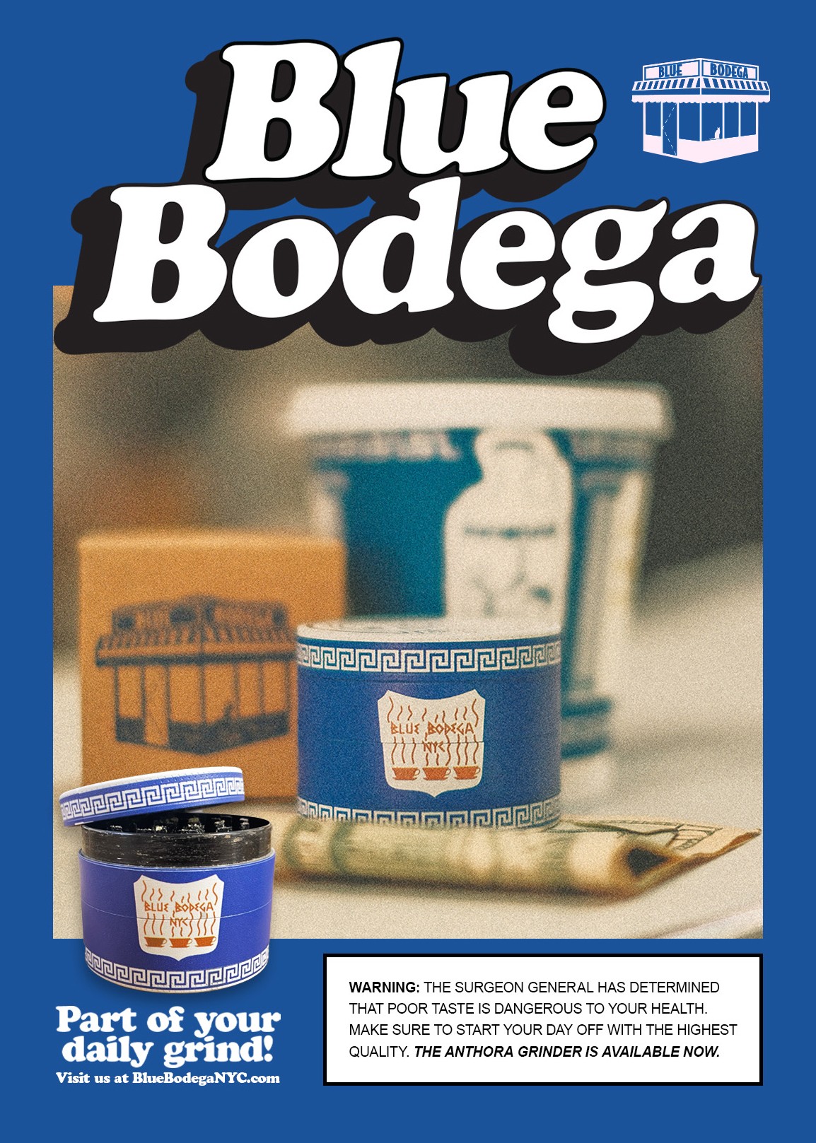 The Blue Bentel Bottle and Anthora Grinder photos are credited to @Natives1990. All other images are by Blue Bodega.