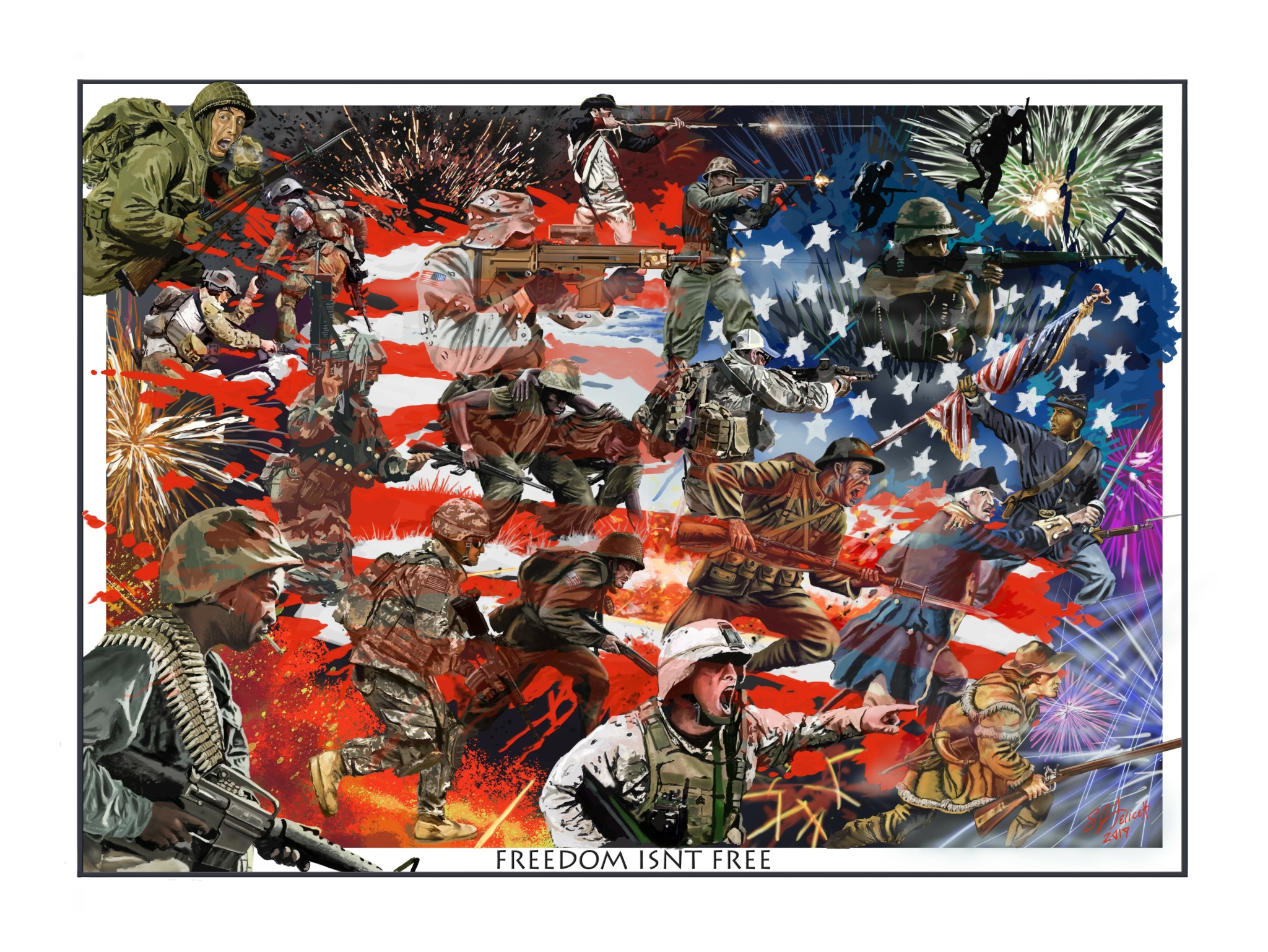 I started my business in 2015 with a mission to help foster support for our military community. This was my way of giving back to a community of Brothers and Sisters that have given me more than I could have ever asked for. As a retired First Sergeant that served for 24 years in the USArmy soldier care is still a priority. I am 100% committed to helping our military and veteran communities. My artwork often contains content that helps bring recognition to our service members and veterans. SJF Graphic Arts supports both non-profits Tunnel to Towers and The Wounded Warrior Project with regular donations. I have always used my business as a way to help promote awareness and foster support for our military, service disabled veterans, and their families. With the help of my customer’s I will continue to build on this trend in the future.