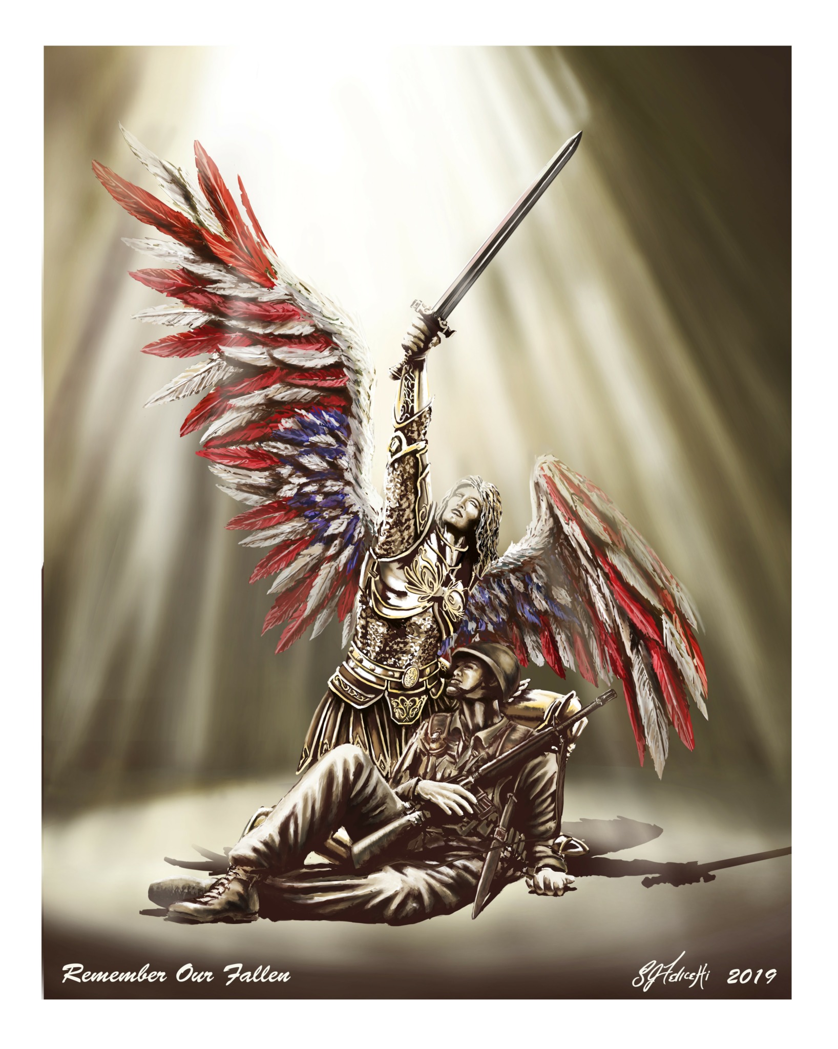 Since the start of my business in 2015 I have completed over 100 separate commission projects. I accept any work, I feel I have the ability to do, and do well. Some of my past projects include portraits of people or pets for customers, illustrations for 3 separate children’s story books, multiple trademarks and marketing tools for businesses, commemorative paintings of historic battles or military units, sold as limited addition prints, custom paintings of homes or other personal locations and much much more. You can view many of the examples of my work on my website in my online gallery. Also, if you like you can follow my journey on Facebook and/or Instagram. In the not too distant future I plan to publish a graphic novel series of my own. Launch a YouTube channel sharing my art experience and create a line of collectable figurines under the SJF Graphic Arts label.