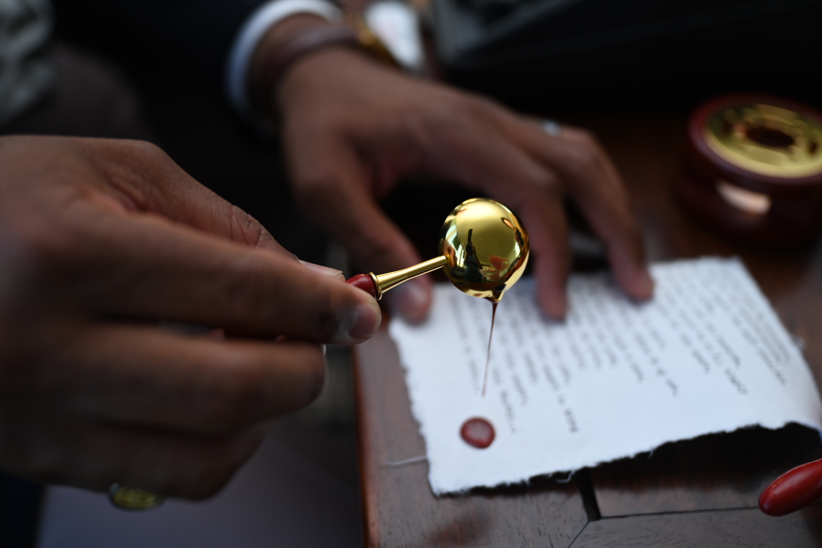 So I had had my typewriter for over a year with incredible plans to set up at weddings, parties, etc and type on-the-spot poetry and wax stamp my initials on every piece. But, the typewriter and the idea collected nothing but dust and a few likes on Instagram. Well, one of my best friends, Anu – who is an incredible artist that cultivates and rolls his own cigars at weddings and such – called me on a random Wednesday and asks what my plans are for the upcoming Saturday. He proceeds to tell me that he has a wedding in Oxford and the I need to have my suit on and typewriter packed to go with him. So here I am, sitting at this beautiful venue that is packed full of shiny and beautiful things and even more beautiful people…and I am scared shitless! Sure, I have a cool concept and have the talent to pull this off, but will it actually work? So slowly, one or two people approach and ask me what I’m doing there and after I explained that I’m writing custom poetry they proceed to ask me to write about things like “the color yellow,” “a rainy day in New York,” you know… all the poetic stuff I suppose. But, all of a sudden, a tall gentleman comes to the table and says, “I’m the father of the bride, and that guy over there is my childhood best friend. He lost his parents when he was little and we raised him. Could you write a poem about us?” Finally, something to really sink my teeth into. So I write, and as he is reading, this man looks at me and the tears begin to pour. He calls his friend over to read it and they both cry. He reaches in his pocket and drops a crisp $50 in a jar. After that, the guests came, I typed, they cried…it was a hit.