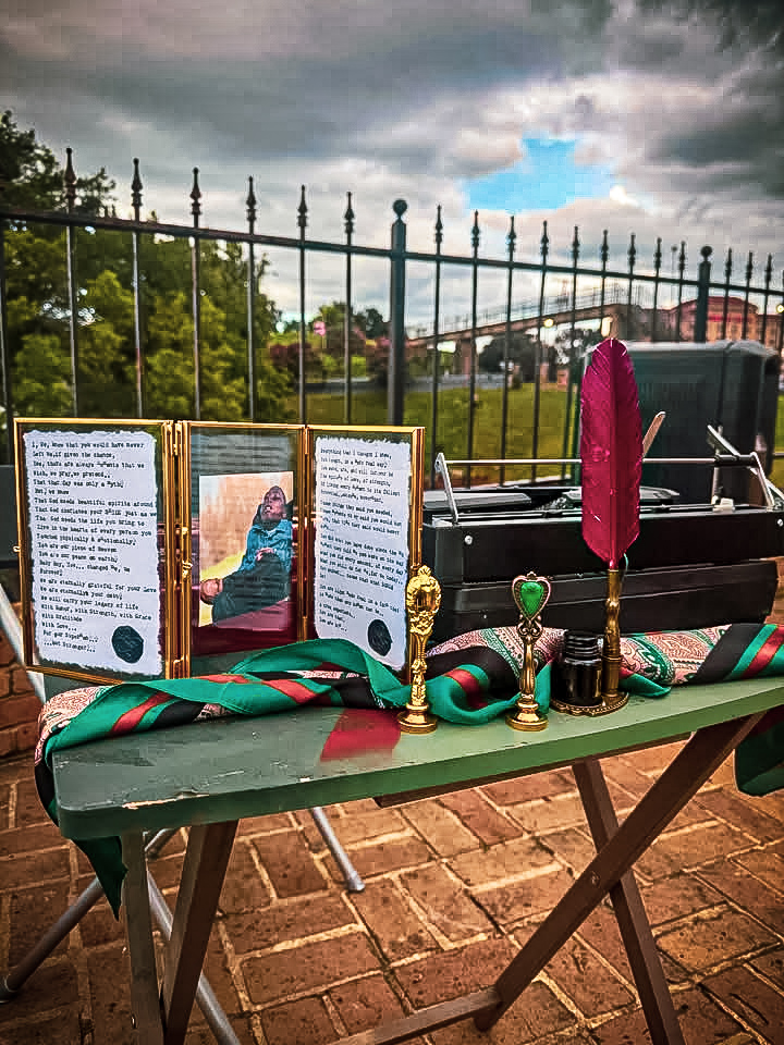 As a poet, I wanted to challenge myself. I figured there was nothing more challenging than setting up a typewriter at a random spot and creating for passersby. There is something so beautiful about the art of conversation, just two people sharing, absent of technology. My goal is to provide a full experience that is felt in the soul. From the questions I ask, to the eye contact, to the cotton paper, the intentional lighting of the candle and melting of wax, to the extended conversation after they have read the piece. It is more than providing a service for me. I have heard many times that what I’m doing should be considered therapy. So, I am currently working on a framework to offer private “TheraPoetic” sessions where I will sit with individuals for an hour, type and frame a piece on the spot, and also provide audio & video documentation for them to have…so stay tuned for that.