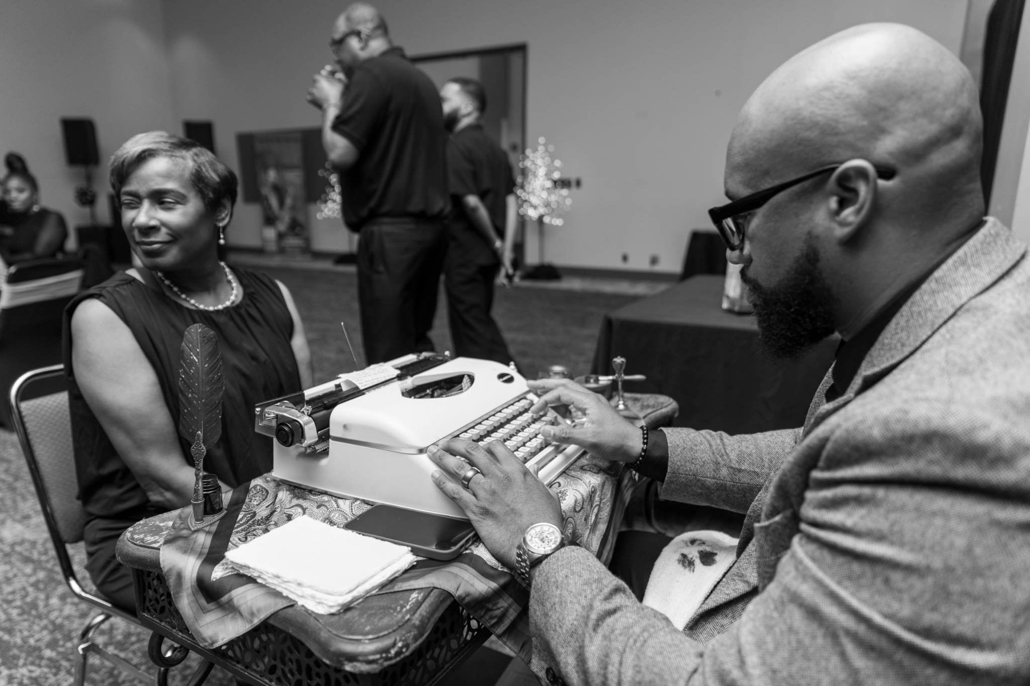 When it comes to what problems I solve for clients, when it comes to the typewriter setup, my goal is to provide a unique experience for their guests that they will never forget. With my commissioned spoken word performances, I aim to make the client and their guests feel that I am a part of their world, that their experiences are my experiences and that I am well-versed and passionate in the things/ideas they care about.