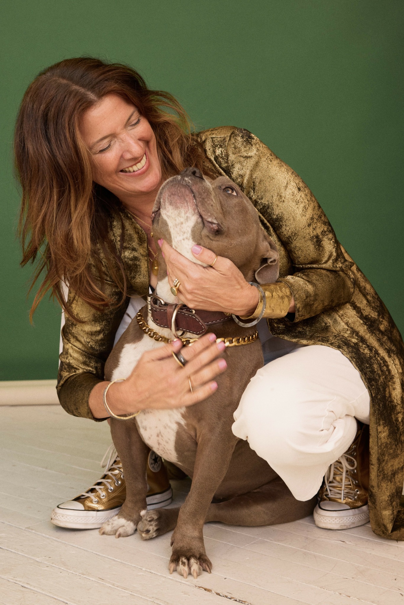 I sculpt and texture and LOVE each piece of jewelry I make. I do it all by hand in NYC, alongside my jewel-loving pitbull, Tiger. He was wearing a necklace when he was rescued, and he really enjoys a chunky Cuban chain. He’s widely loved in the jewelry district, where he accompanies me most days.