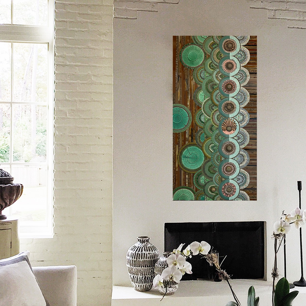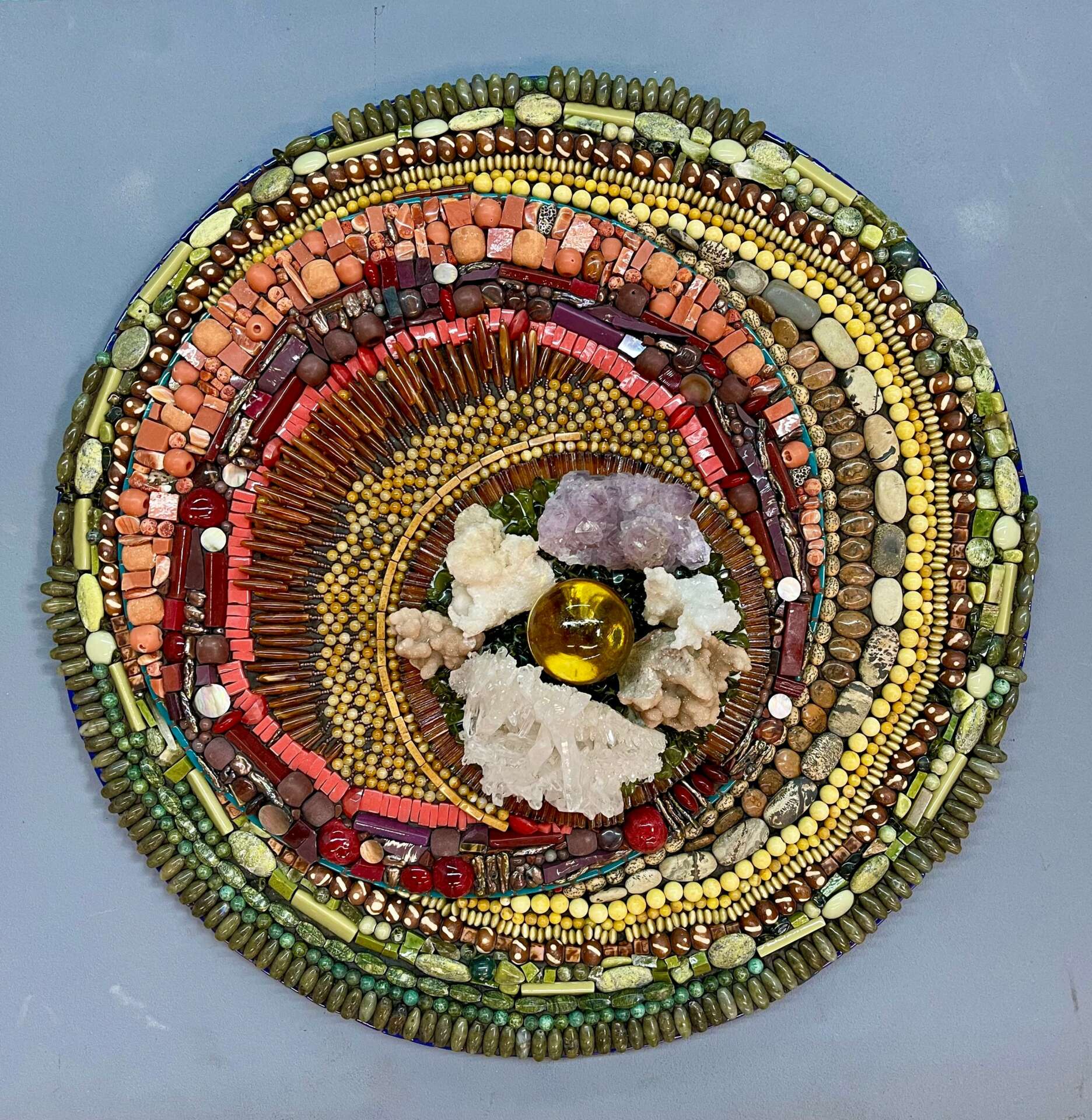 When I went to college, my father advised me to take business classes along with my art classes. I failed out of economics 101 so then took the path my mom suggested and went into Theatre design. They felt I could never support myself on my art but that the theatre would be a good path to a creative field I could live on. I never loved working on sets and never felt it was my creative calling. So 1 day I walked into a gallery with my new work- mosaics! and got my first show. I sold $10,000 worth of art and the confidence I needed to say, ” I can do this! ” I like to think of my art business as a tree. At the base you need to have a strong creative voice that grows and changes. Financially I have the branches of the tree or the different revenue streams that support my art. It is very challenging to just sell art and make a living. A small group of artist have that luxury and I am not even sure how they get there, honestly. One of my branches is my teaching. I teach what I love to do and I am good at it. Another branch is I sell the materials that I use in my own mosaics. Everyone wants to have what I have. So I purchase my unique tessera in bulk, repackage it and sell it along with my hand-made substrates.