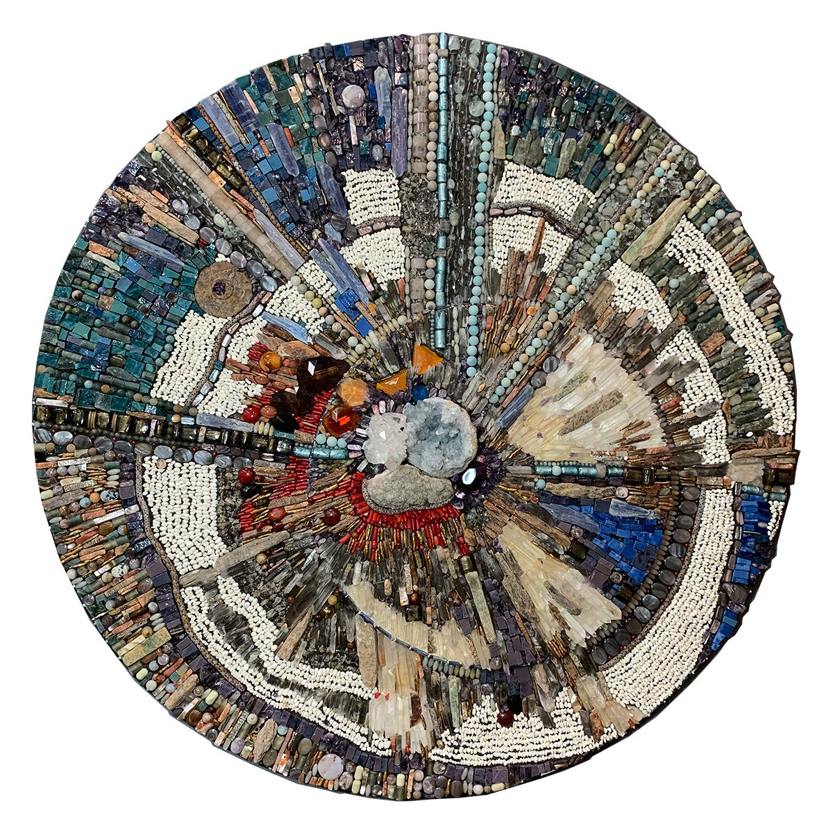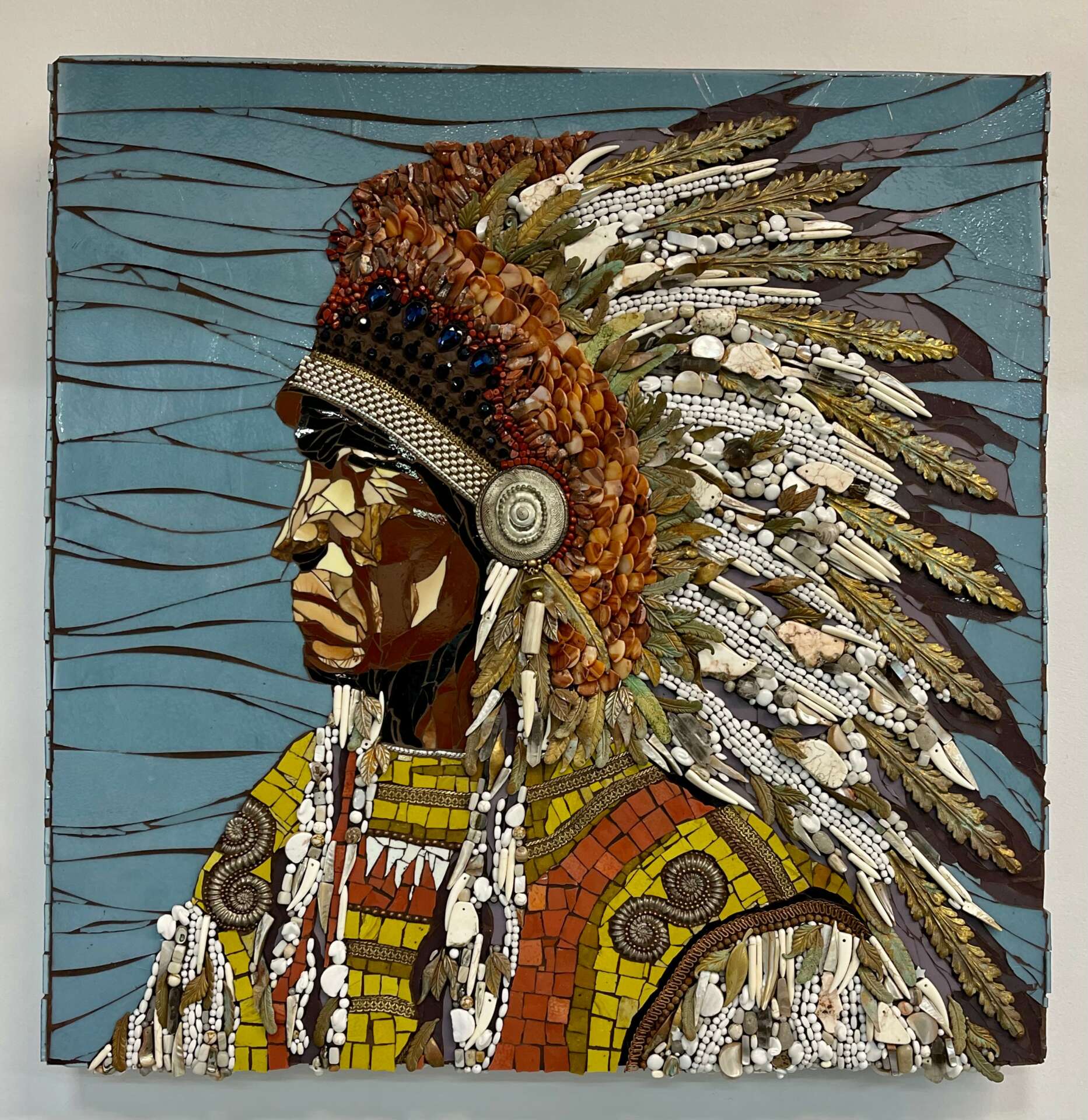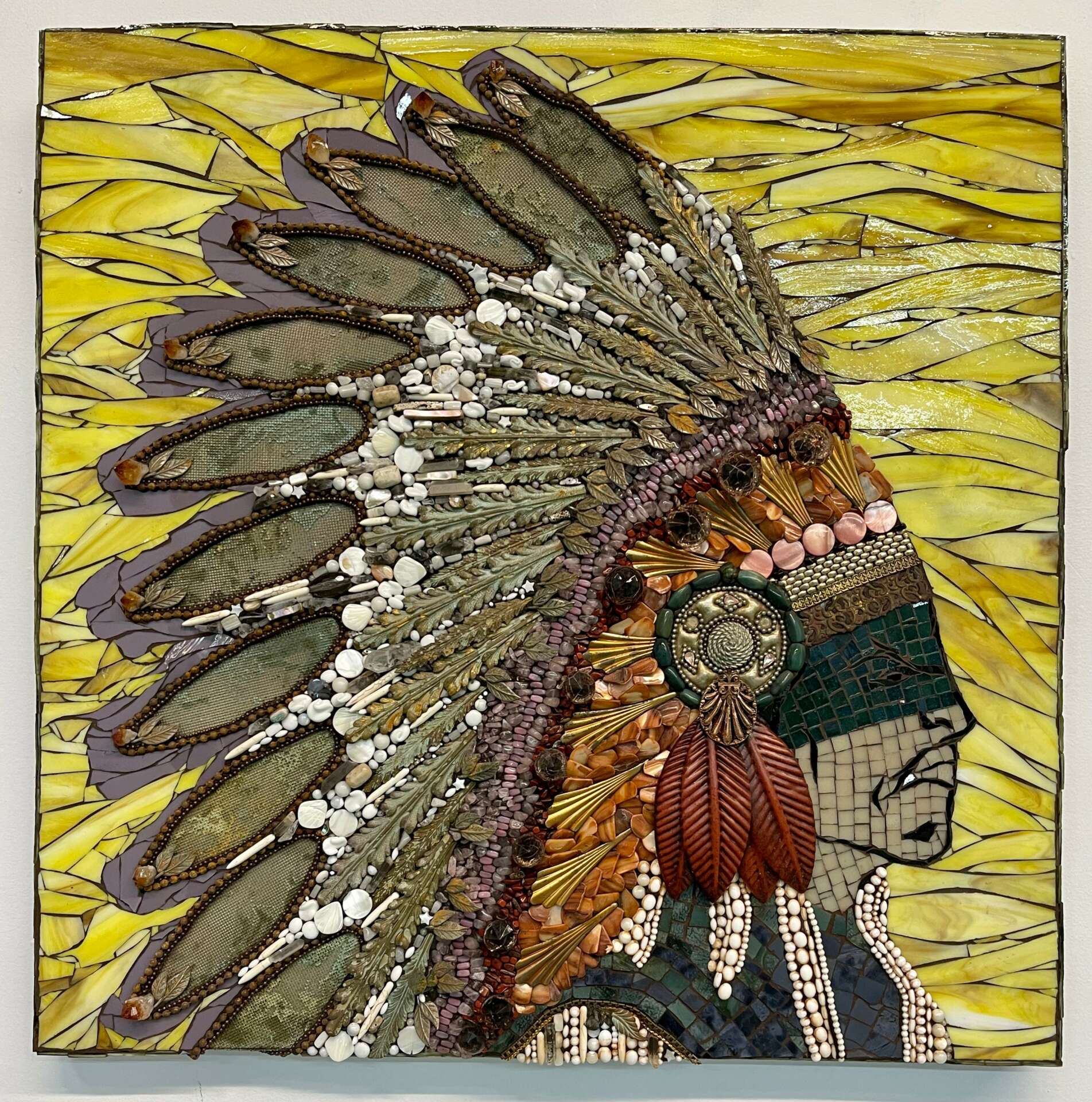 What sets my work apart is because I have an artist mind and self taught I have no boundaries and I explore the entire spectrum of what mosaics can be. I use unusual materials to tell my visual stories and have created my own techniques for adhering those materials into a mixed media mosaic.