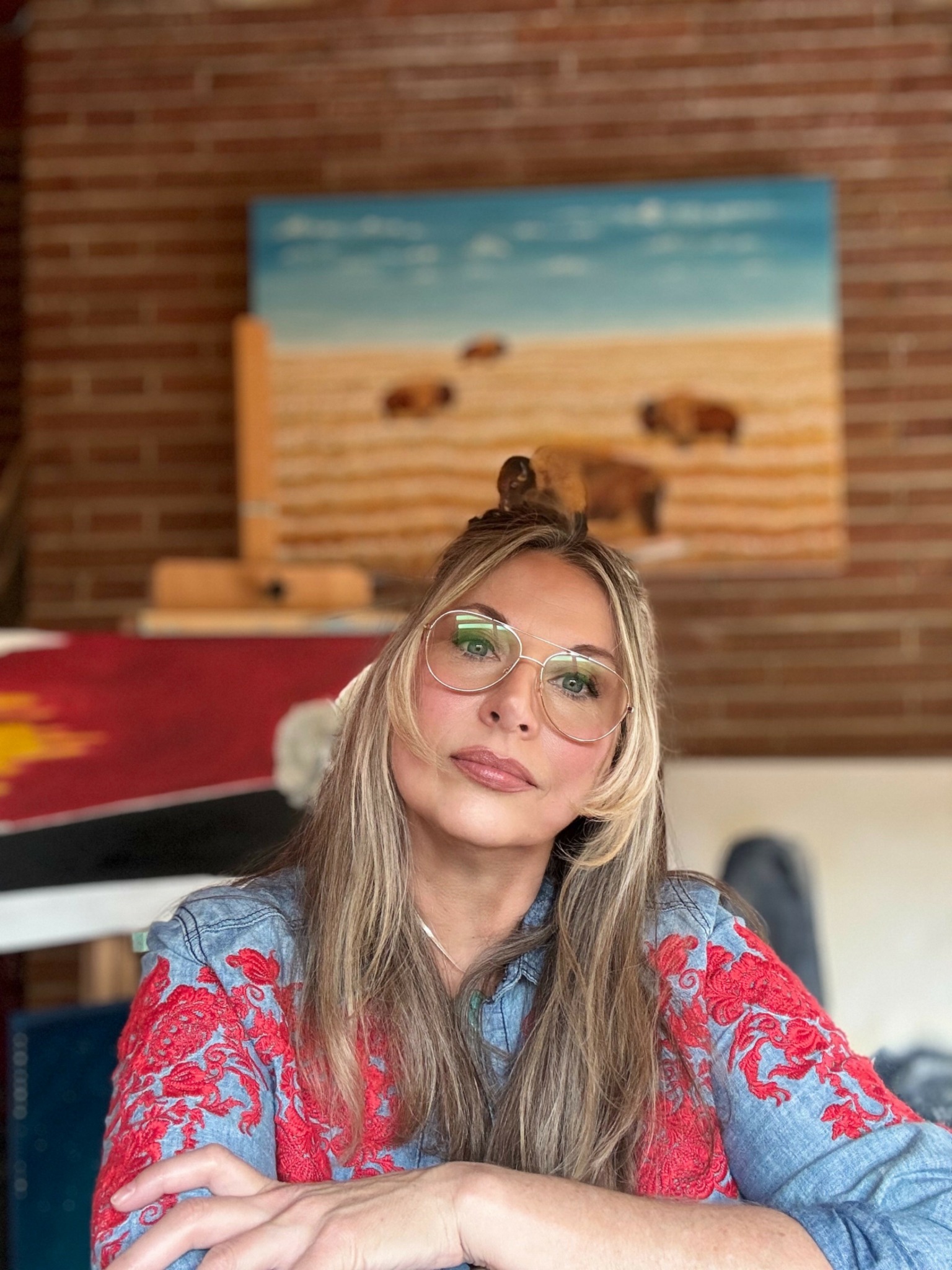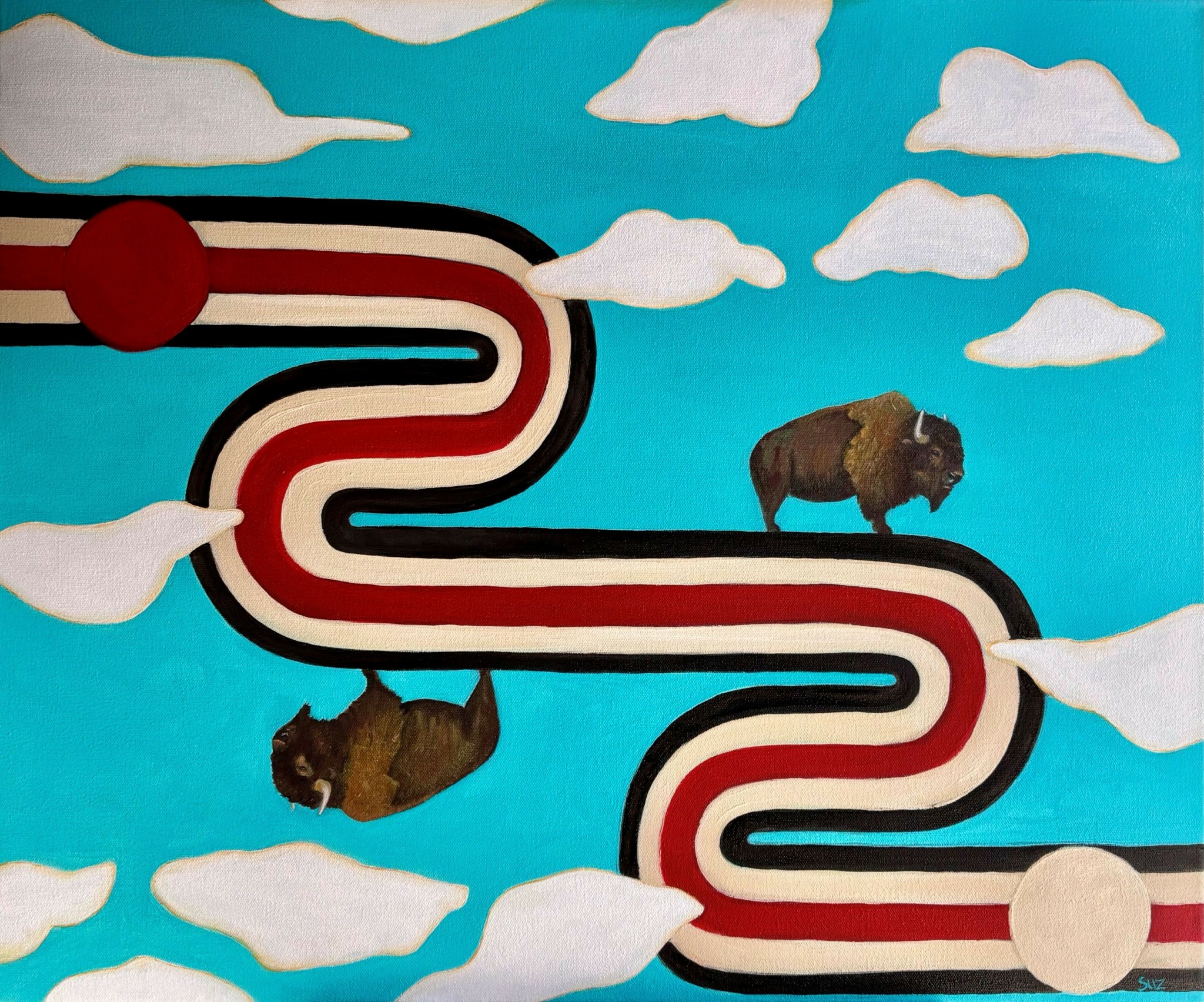 I’ve developed a style I like to call ‘contemporary Western with a twist.’ It’s a blend of familiar imagery of the West with elements of folk-art traditions intertwined with abstract forms and subtle touches of surrealism, all working together to create visual narratives that hopefully offer a fresh perspective.