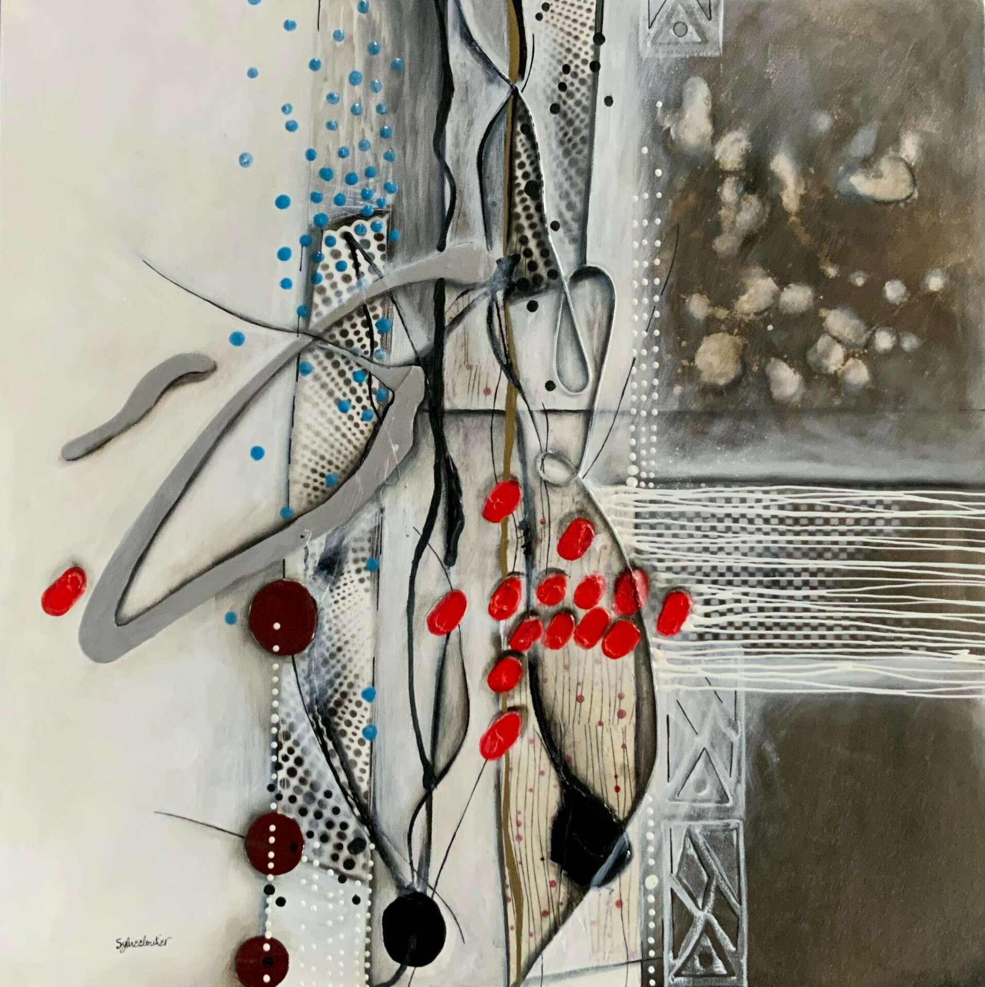 The fact that I was teaching full time, I didn’t do as much as I wanted, in my painting. It did not leave me enough time to develop the dissemination of my art. I was working, research in abstract images for 35 years, my own style and signature. But I’m represented in galleries for more than 35 years. The owner of those galleries did and do today the work of diffusion.
