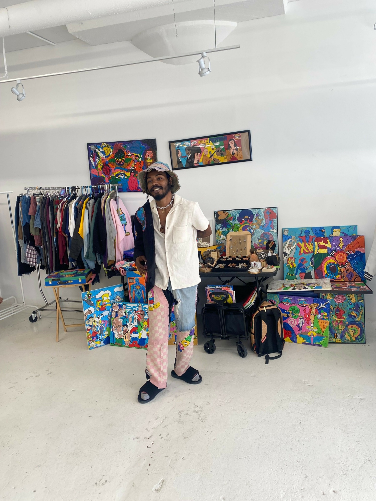 We paint cartoons , of All sorts . We provide canvas’ , art , clothing ( men’s & women’s ) . Hand bags , pants , jeans , jackets , hoodies ,tables , suitcases & more ! all hand sewn & hand painted original limited editions (1of1)