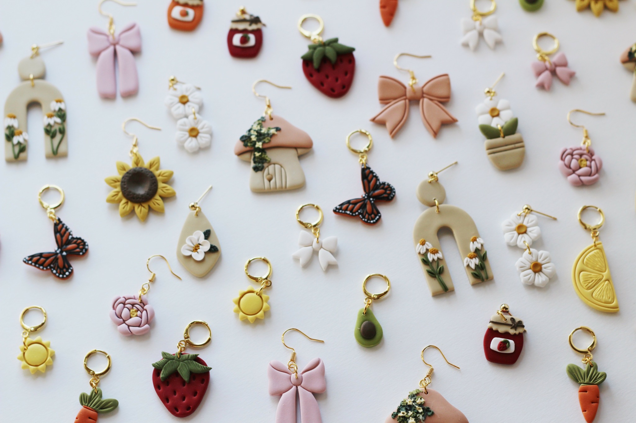 The main craft of my business is making polymer clay earrings. It is a craft that took years to hone and I am still constantly learning and trying to become more skilled at my craft. I originally picked up clay to make myself earrings and quickly fell in love with it. Polymer clay is an amazing medium to work with because the possibilities are endless. Since I mix my own colors and design each piece by hand, I’m able to make unique designs that match my style. In my business I only make things that I personally love, so in time I’ve attracted customers that have the same taste and style as me, which is so fun! But of course, I hope there is something for everyone!