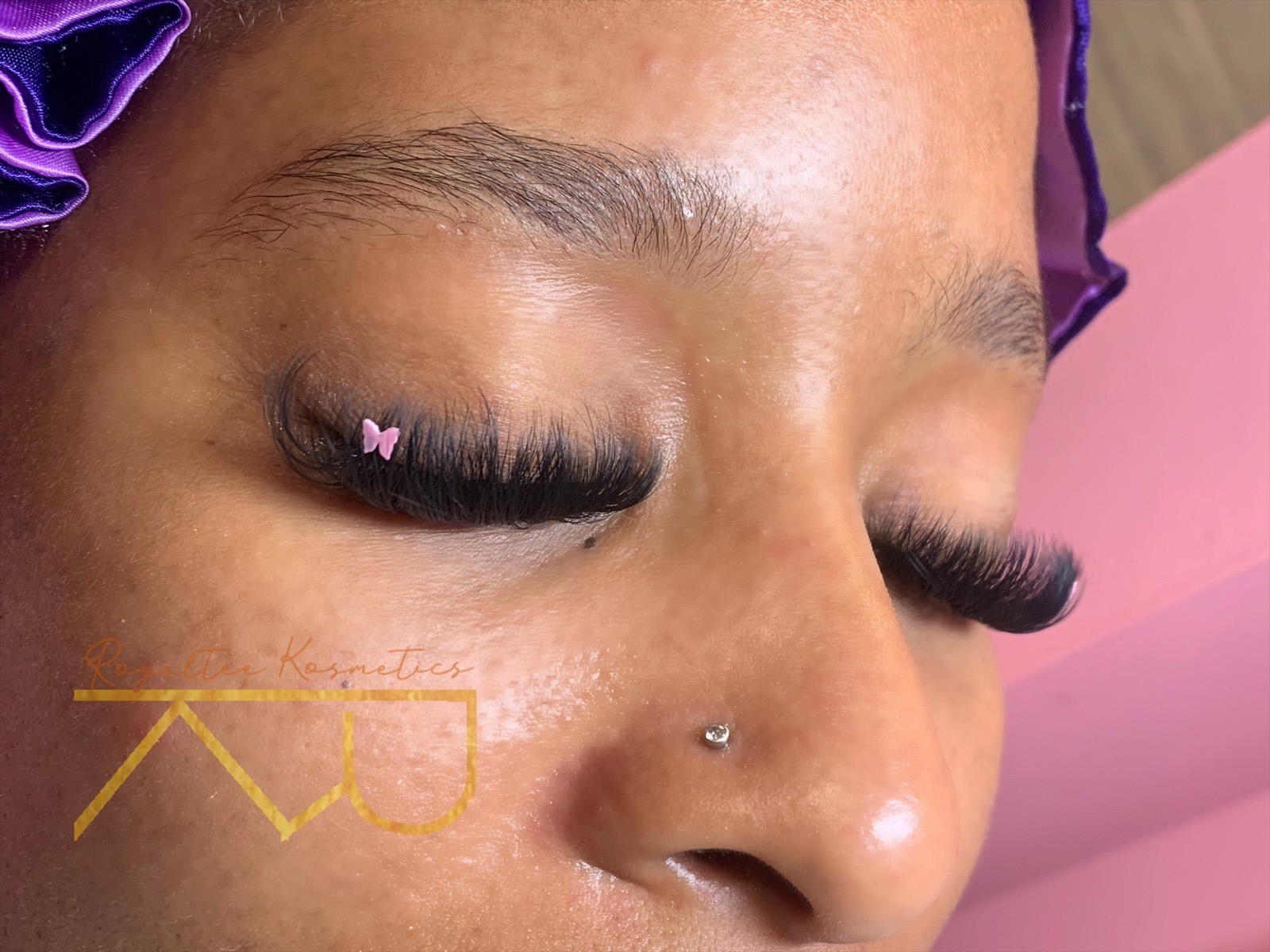 RoyalTee Kosmetics also consists of RoyalTee Extenzionz, where I offer an alternative to the 25mm strips I also offer. This is individual extensions where anywhere from 2-10 lashes (called fans) are carefully placed on each individual natural lash (NL). There’s different types of eyelash extensions Classic, Volume, or Hybrid. I Specialize in Volume extensions where 2D-5D handmade fans are placed on each individual NL. I got into this just by researching more about lashes. I went and took a course to get trained by a certified lash technician in my area. She only trained me for Classic lashes, which strictly one lash per NL. I ended up doing more research myself and watched videos, followed other lash technicians and taught myself how to do volume lashes.