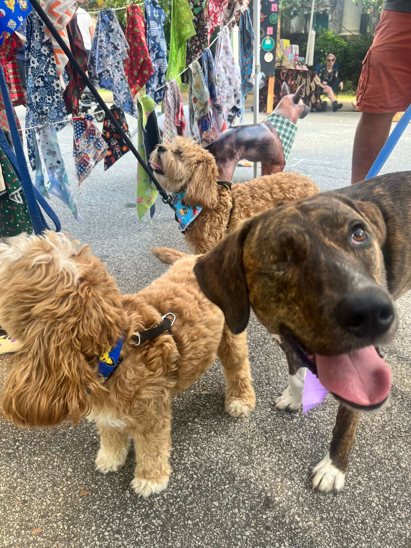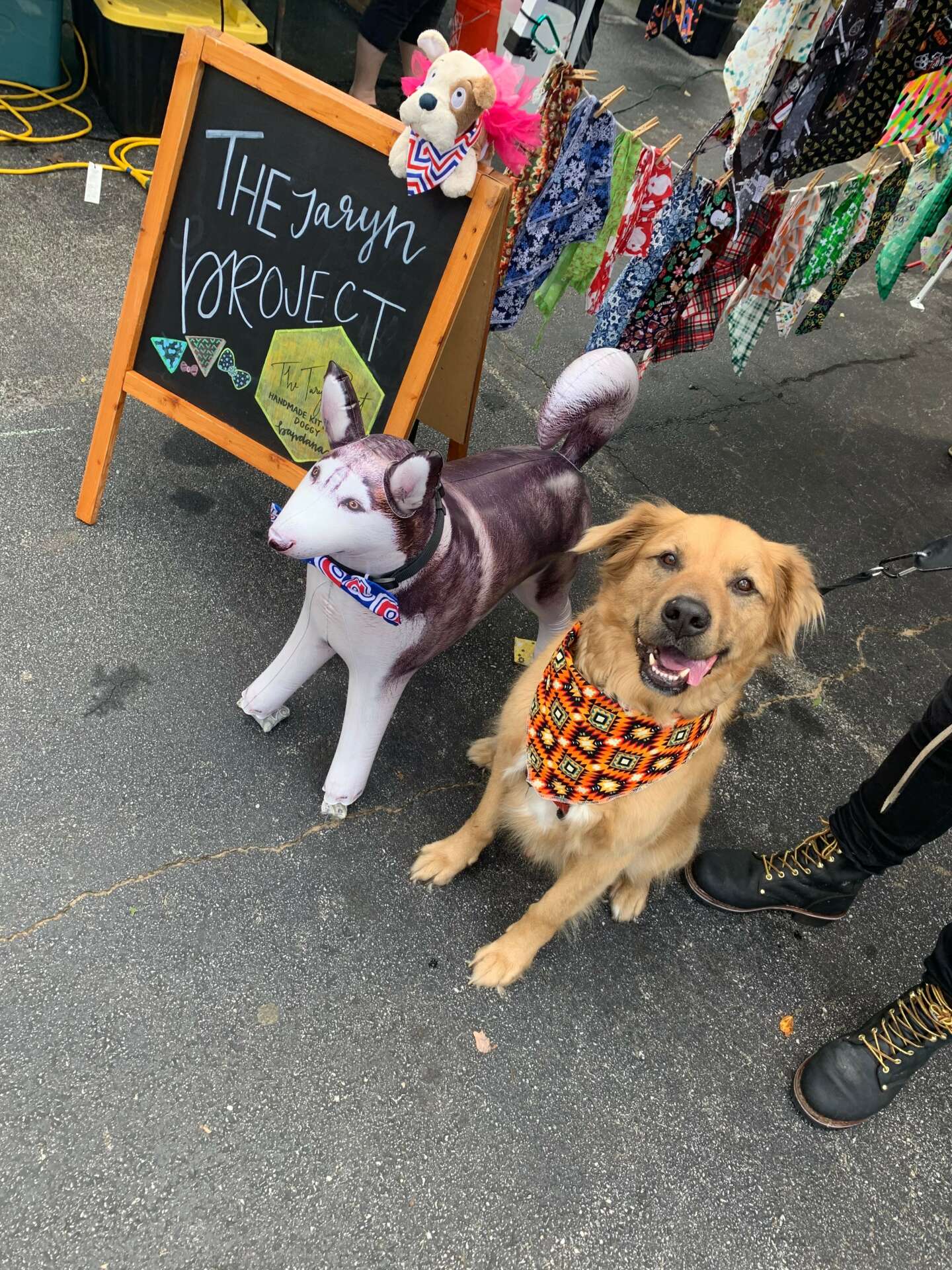 I feel the most rewarded as a maker when a customer walks into my booth and smiles at all the colorful textiles flowing in the wind and selects the perfect match for their furbaby. The even better part is when a fur baby can try on their new bandana or bow ties and we have a photo shoot and treat right there in my booth. Doggy smiles and puppy kisses make the world a better place.