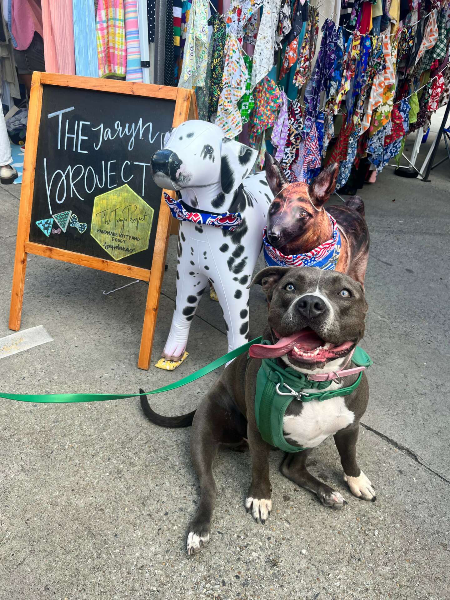 I feel the most rewarded as a maker when a customer walks into my booth and smiles at all the colorful textiles flowing in the wind and selects the perfect match for their furbaby. The even better part is when a fur baby can try on their new bandana or bow ties and we have a photo shoot and treat right there in my booth. Doggy smiles and puppy kisses make the world a better place.