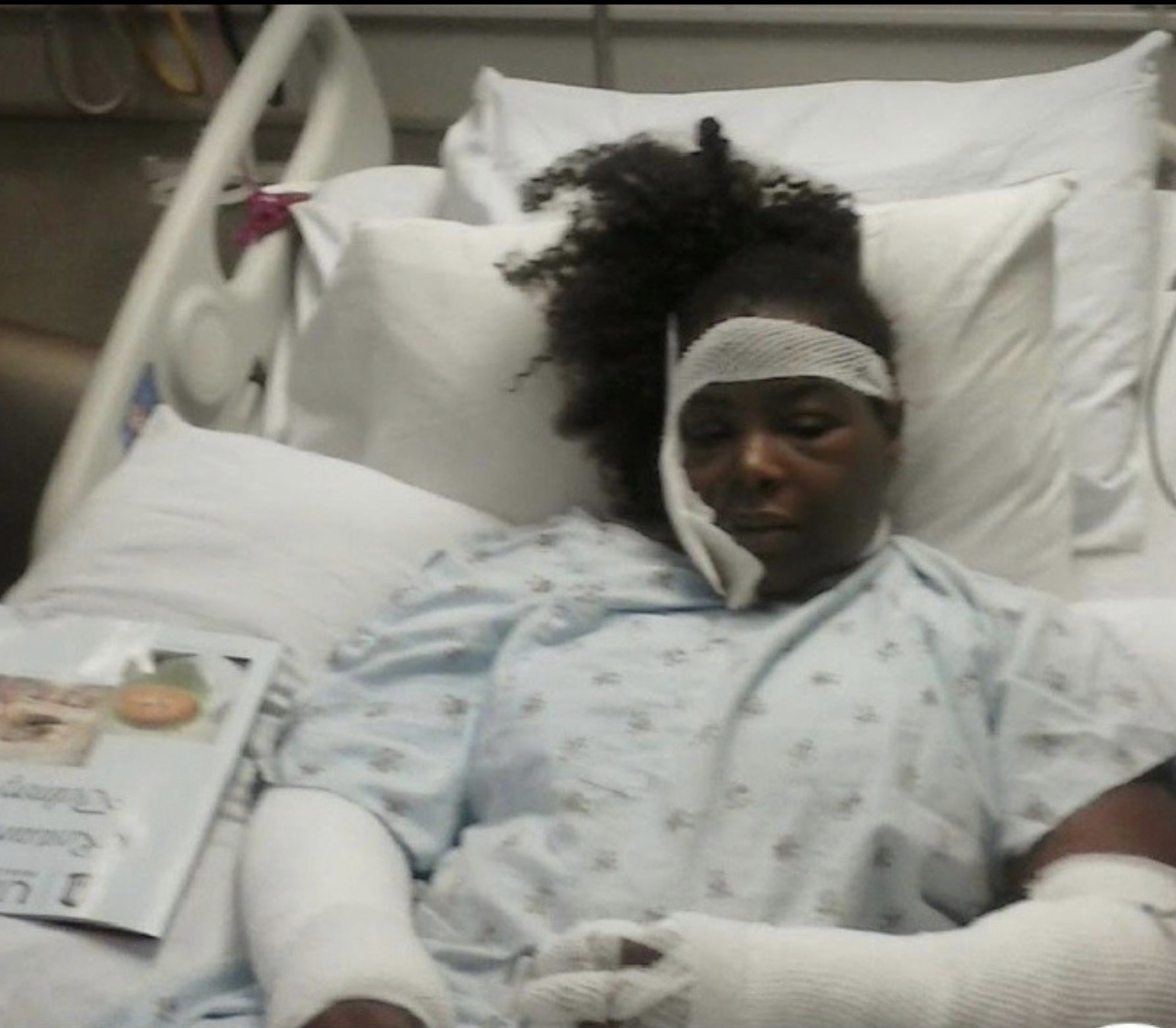 My lip ripped away from my face, and I was bleeding to death. The ambulance took the two people to the hospital and myself. The two people were treated and released with minor injuries that night, ( I know they suffered more, because just like my daughters cellphone bill,I told myself I’d pay my insurance later; I thought I had time. I pray for them every time they cross my mind).