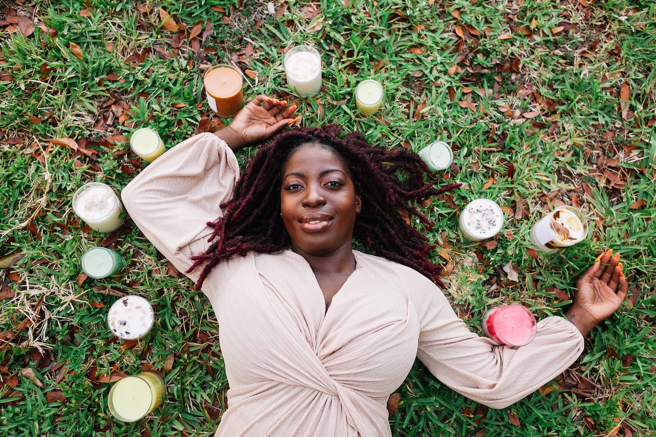 Well, my name is Tasheena Salmon I was born and raised on the beautiful island of Jamaica. I am a Clinical Social Worker, my area of focus is treating adults with Substance Use Disorder and other Mental Illnesses. Outside of being a Social Worker I run and operate my candle company The Simple Pleasures Candle Co. I started my company Nov. 11th, 2020. The idea to create candles came during the heart of the pandemic. I had no idea what I was getting into but I allowed my faith to lead me. I purchased all the supplies and then got to work in the “lab”. It also turned out to be a great way to release some stress from all the chaos of what was happening with the pandemic.