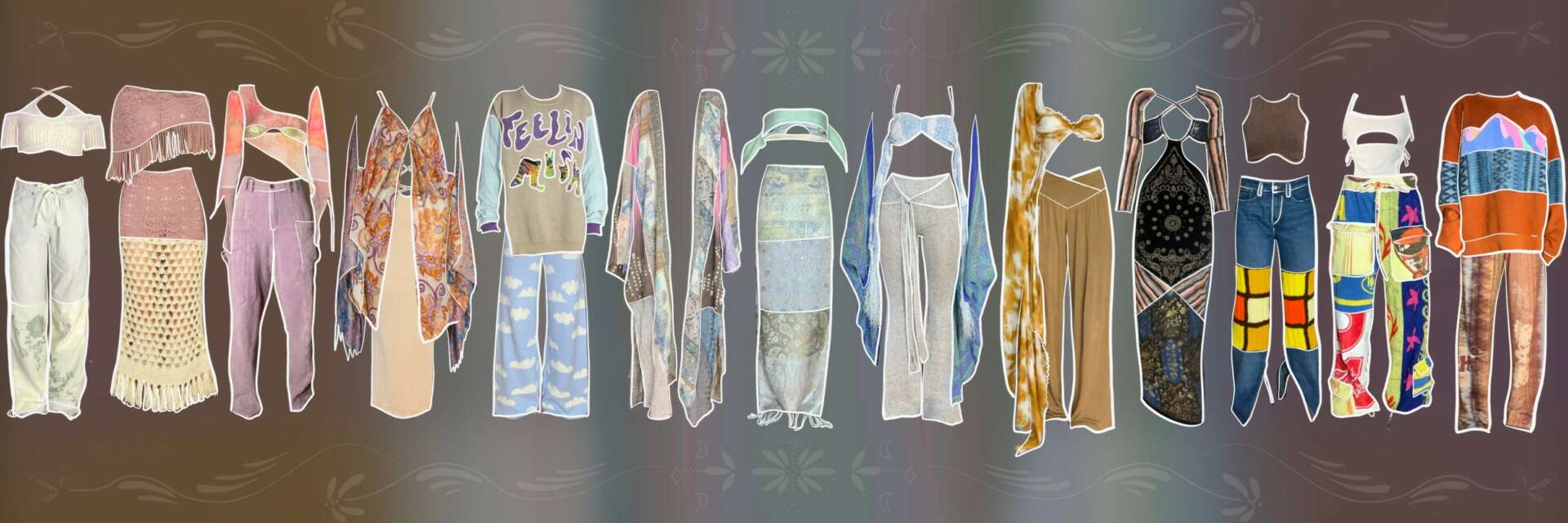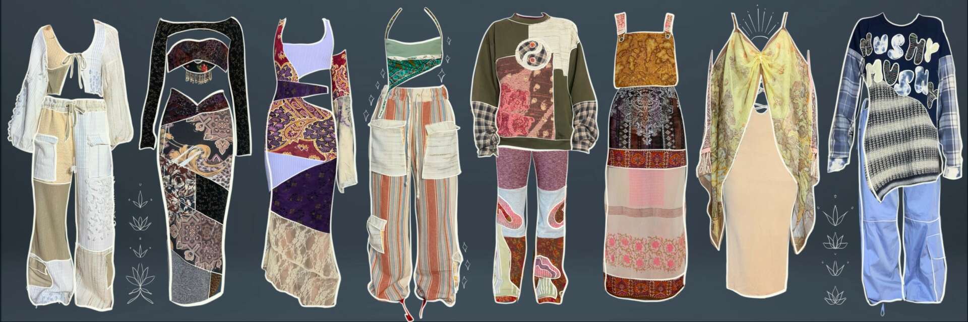 Hippie Hued is known for our upcycled, one-of-a-kind pieces that we produce in-house. All of the materials are sourced at the thrift store, redesigned using procreate, then sewn by me and my only employee and best friend, Marisa. We work on a drop schedule, sewing on average 10-20 new designs that are featured biweekly on our site. The reclaimed pieces sell almost instantly, and with only 2 of us sewing, it makes it difficult to provide additional inventory for our customers. This is why I added the collections “hand-picked by Hippie Hued” and “Drippy Hippie Merch”. Hand-picked is a collection of clothing that comes in various sizes. I supply these pieces by going to market and carefully selecting styles that speak to our personal style at Hippie Hued. Our merch includes styles like hoodies, hats, t-shirts, sweatpants, etc that are either screen printed or embroidered. I design all of the graphics myself, and then I have a manufacturer that does the printing and embroidery. Where my focus lies, and where I’m most passionate, is the upcycling side of the business. Outside manufacturing for upcycled clothing is almost unheard of, but brands are slowly starting to surface that are doing it successfully. I am learning and researching every chance I get to expand this side of the business. Nothing good comes easy, and I am eager to scale something as important as reducing our carbon footprint by upcycling. I’m excited to see where the journey takes me.