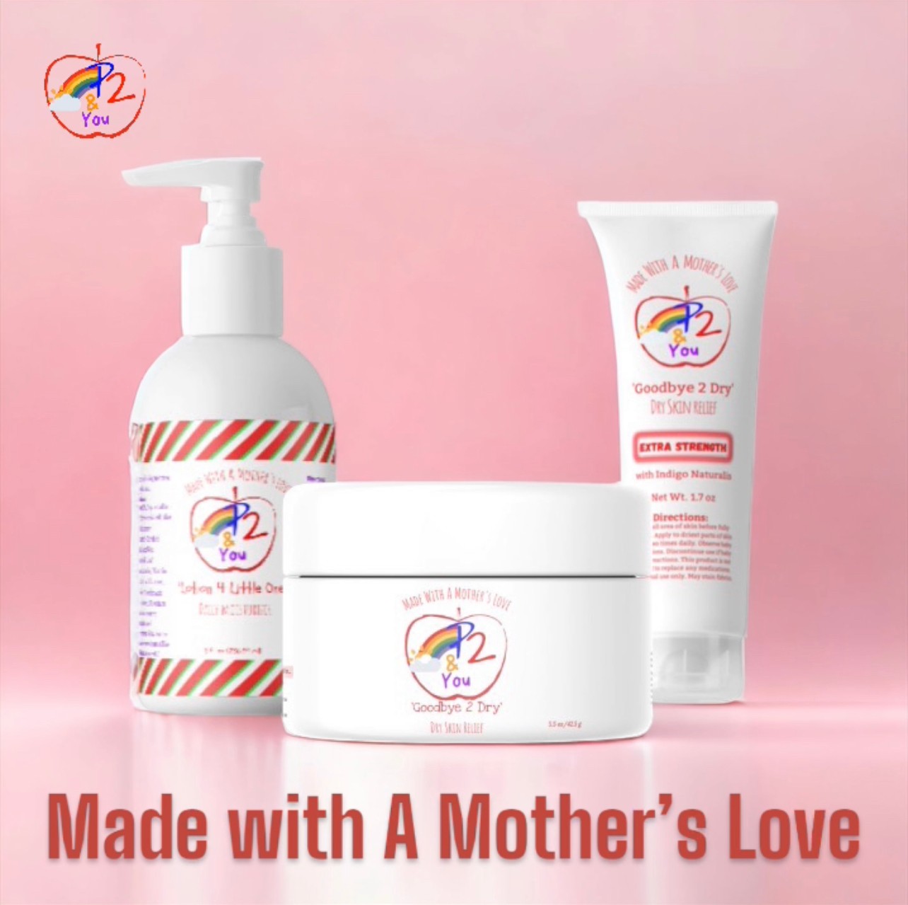 P2 & You was founded out of a personal experience I had as a first time mother. My son developed eczema at 6 weeks old and instead of using steroidal creams and other prescriptions, I believed that I could solve his skin problem with careful research and trial and error. In doing so, I successfully developed what has continued to be our best selling item, ‘Goodbye 2 Dry’ Dry Skin Relief. From there, my business has grown to include other necessary products for infants and small children with sensitive skin such as soap, daily moisturizer and hair care for sensitive scalps.