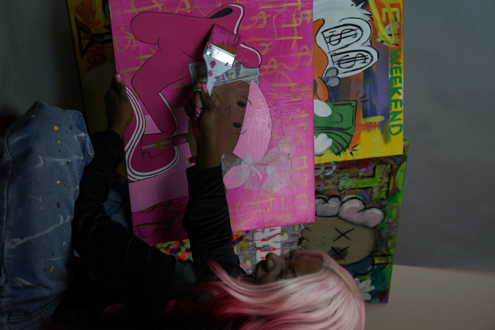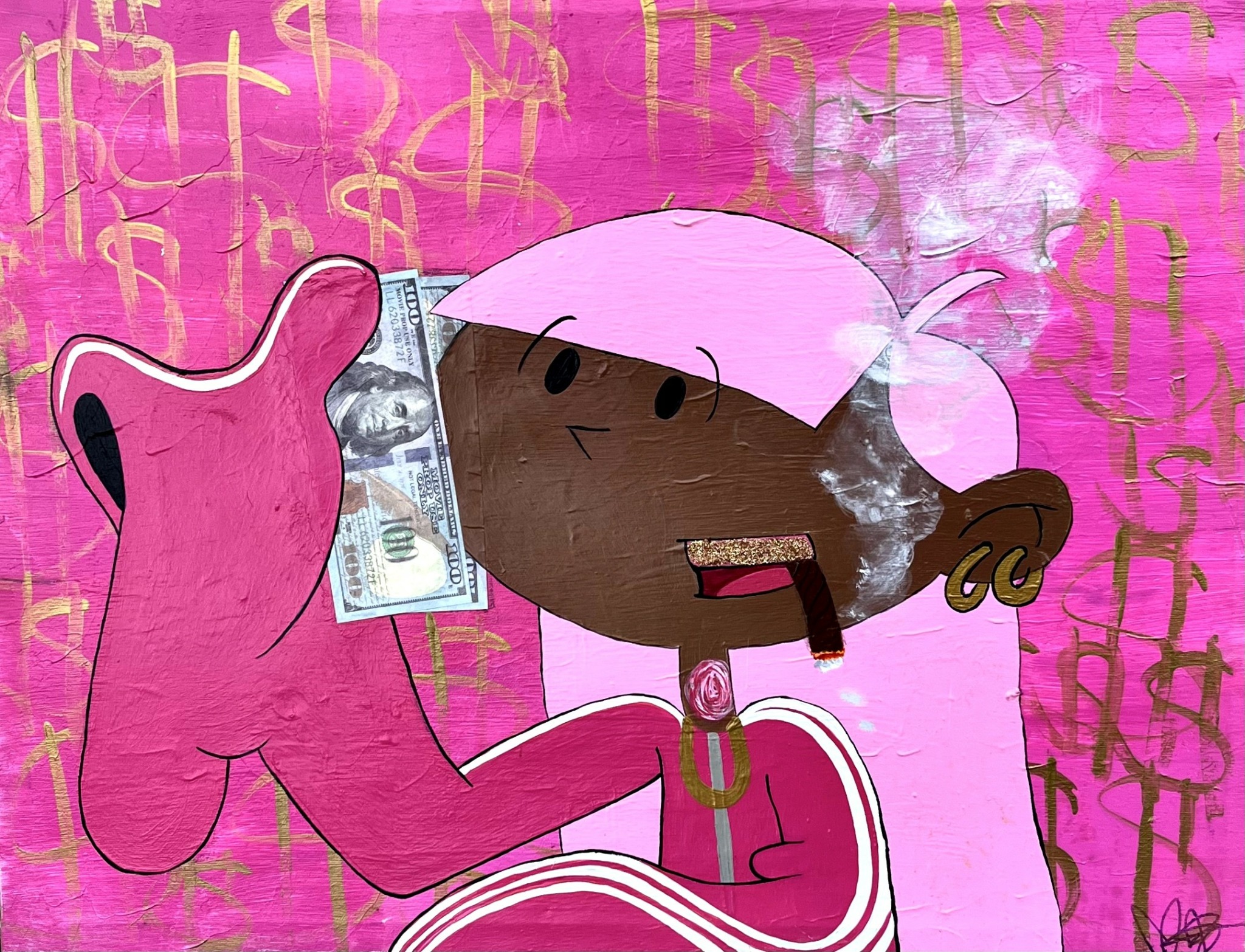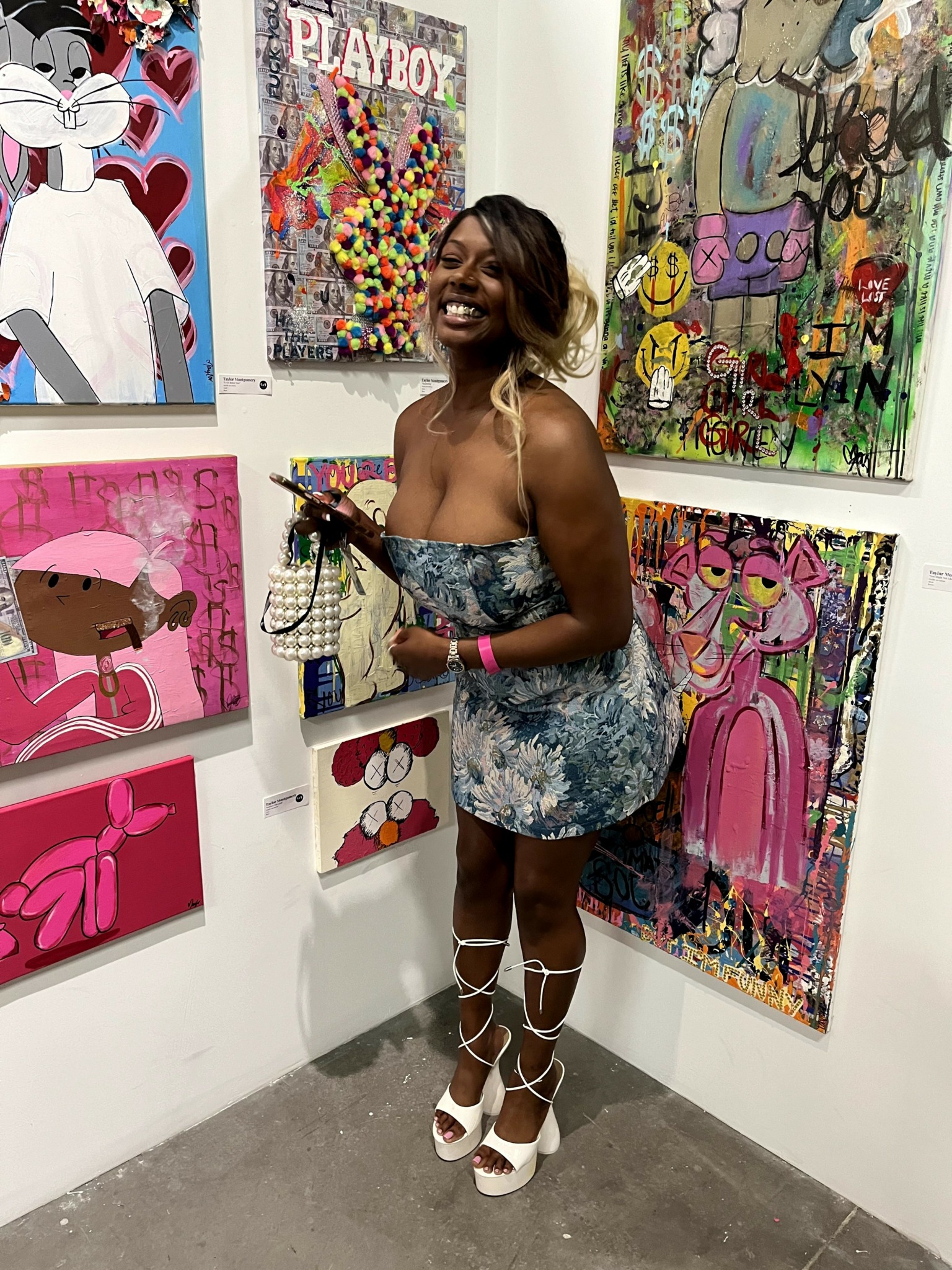 In 2024 I started traveling a lot more to LA so much that it became like a second home as my best friend lived there already. Spending so much time in the city, seeing how much they appreciate self expression, I felt like my life was changing before my eyes and I didn’t do anything but prioritize what was fun and what made me happy. In April of 2024 I shipped my favorite pieces across the country and see if they were as good as I thought. I attended my first art show and sold two paintings within the first couple hours of opening. I was in shock but not surprised I just had to find my people. I knew they were always out there. It was then I knew this was the place for me. When I was in LA I was actually doing the things I said I was going to do. No thoughts, no waiting and definitely not asking for permission. I think that is the key to making things you want actually happen as fast and thoughtless as you can. You can make it good later. I knew there was nothing to do but make the change. I didn’t have a job, car or home to move in – just determination and will power.