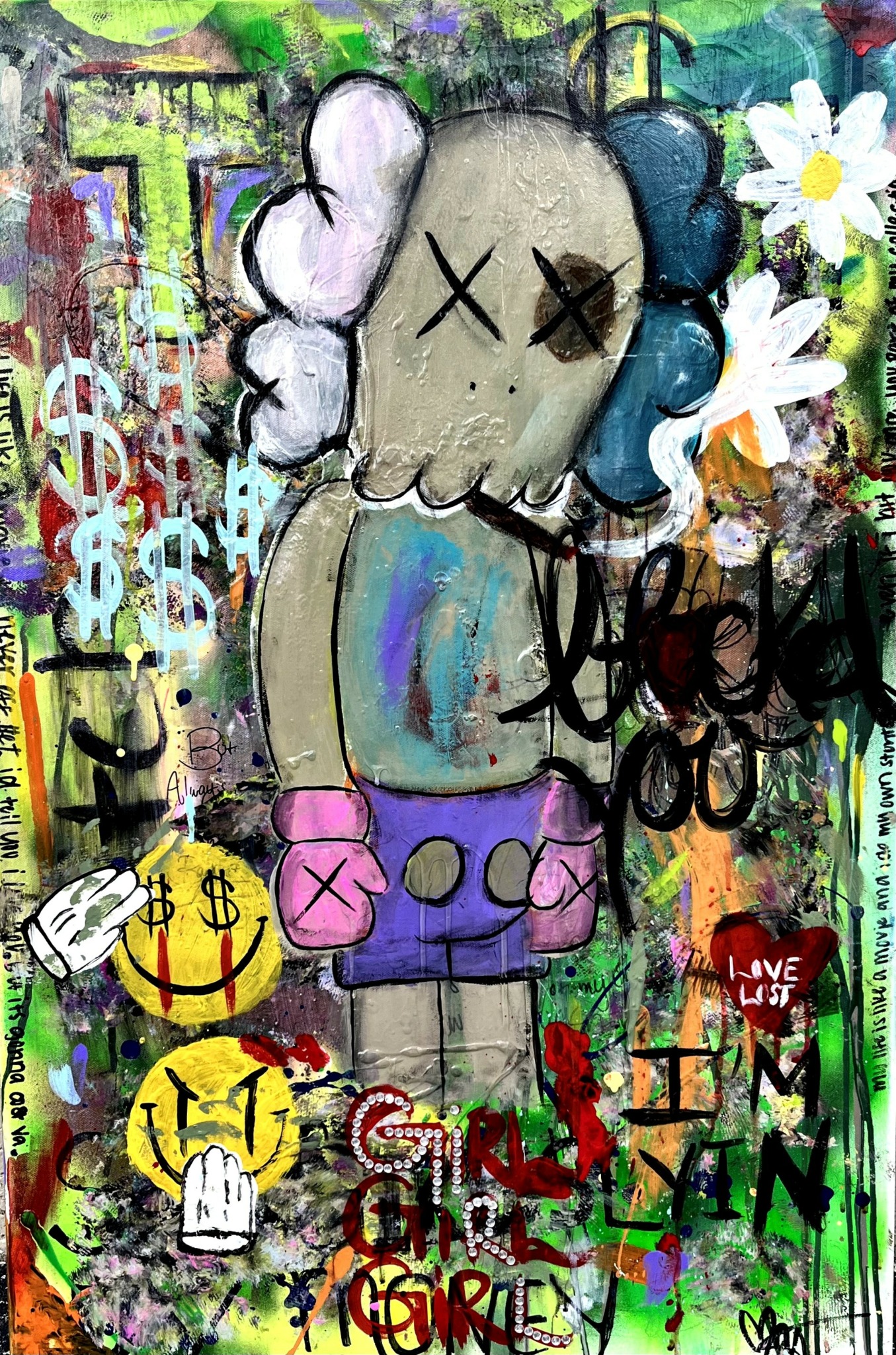 Covid is how I started painting. I was essentially painting canvases for decor in my future apartment that I never got, I was posting everything I did on Instagram and Snapchat and it took off from there. I began doing a bunch of custom canvases for friends, family and strangers. Once I felt comfortable repeating projects I began painting my own stuff adding my own spin to it.